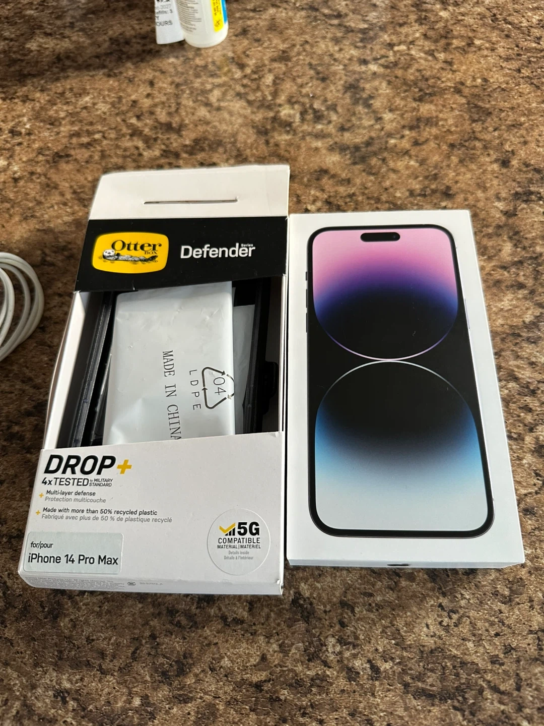 Apple iPhone 14 Pro Max in Deep Purple with 512GB storage. Battery health is at 89%. Includes new OtterBox Defender case and charging brick. This phone's storage is 512GB.