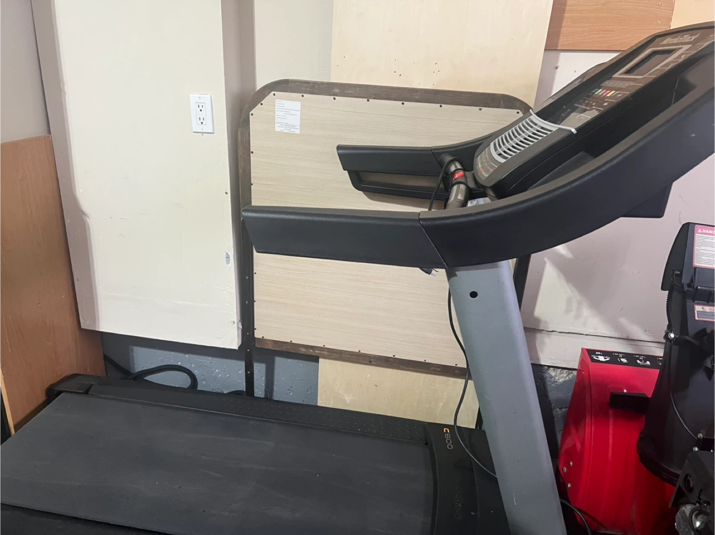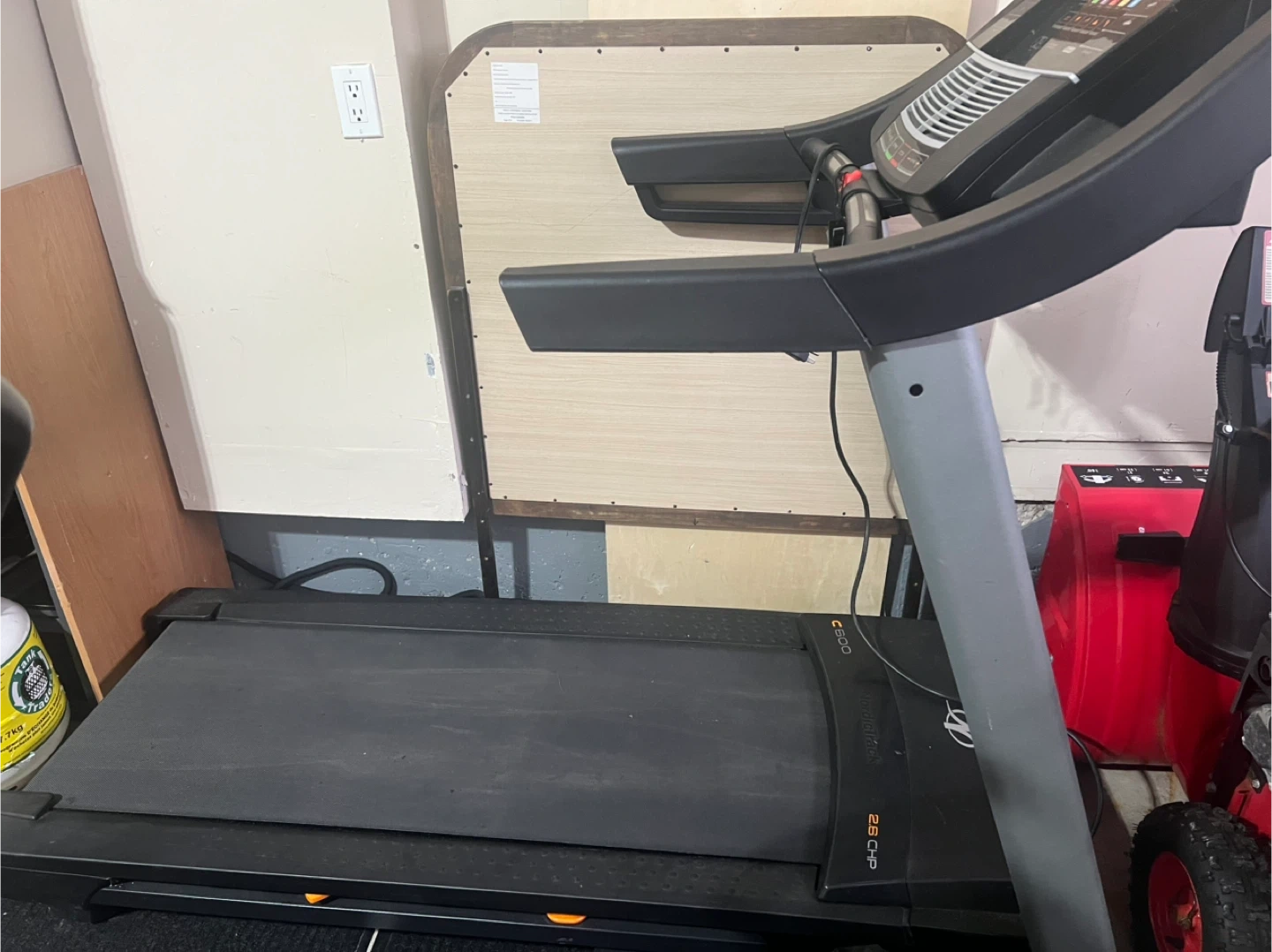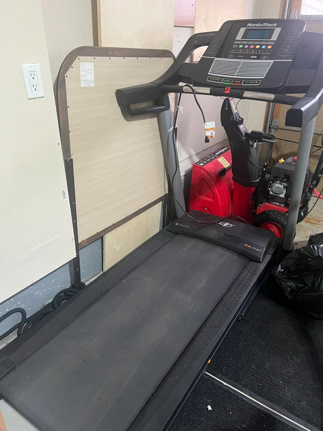 This NordicTrack treadmill has a running surface and adjustable incline. It features pre-programmed workouts and a digital display. Great for home cardio sessions!