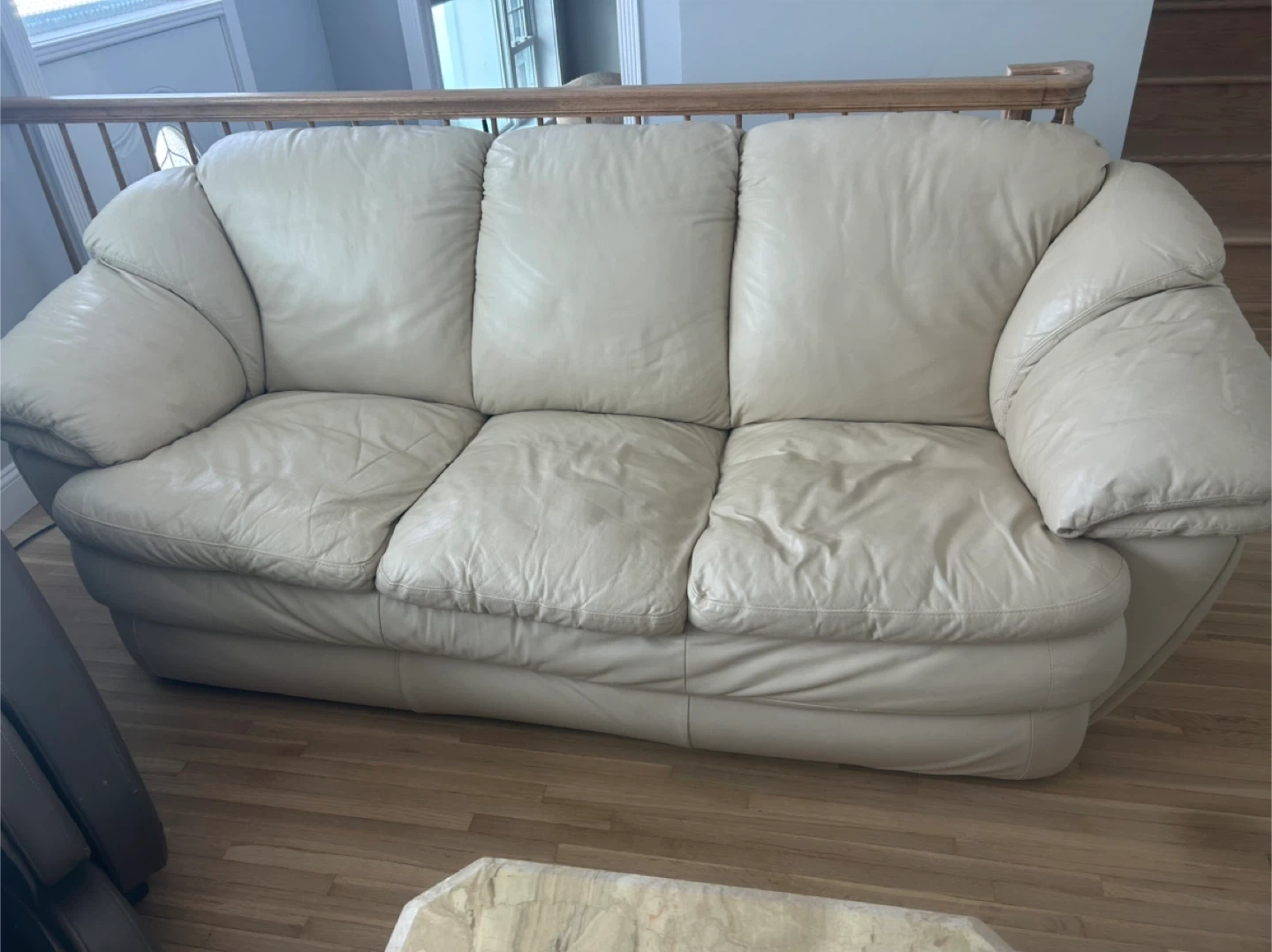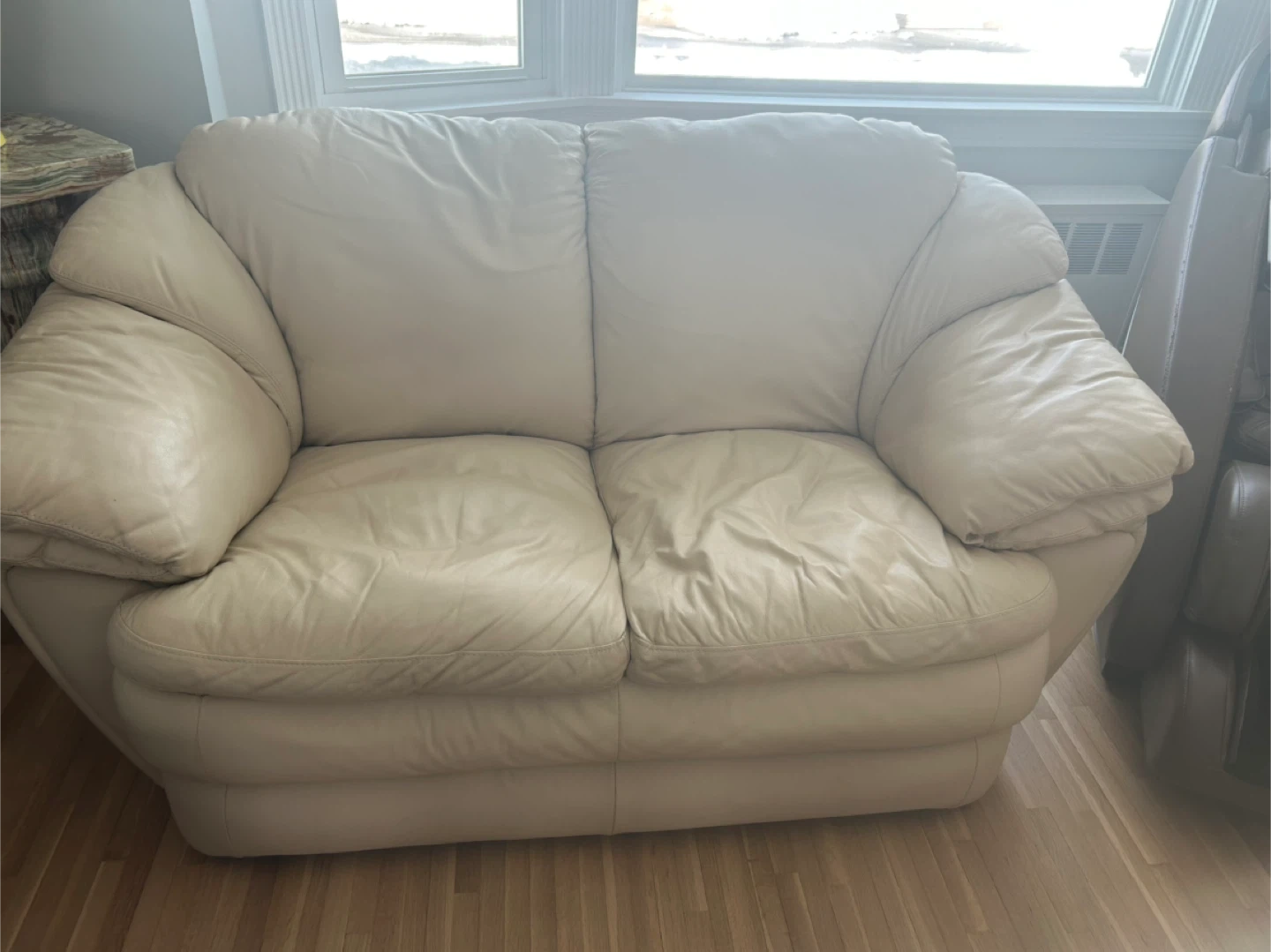 Cream Leather Loveseat and Sofa Set