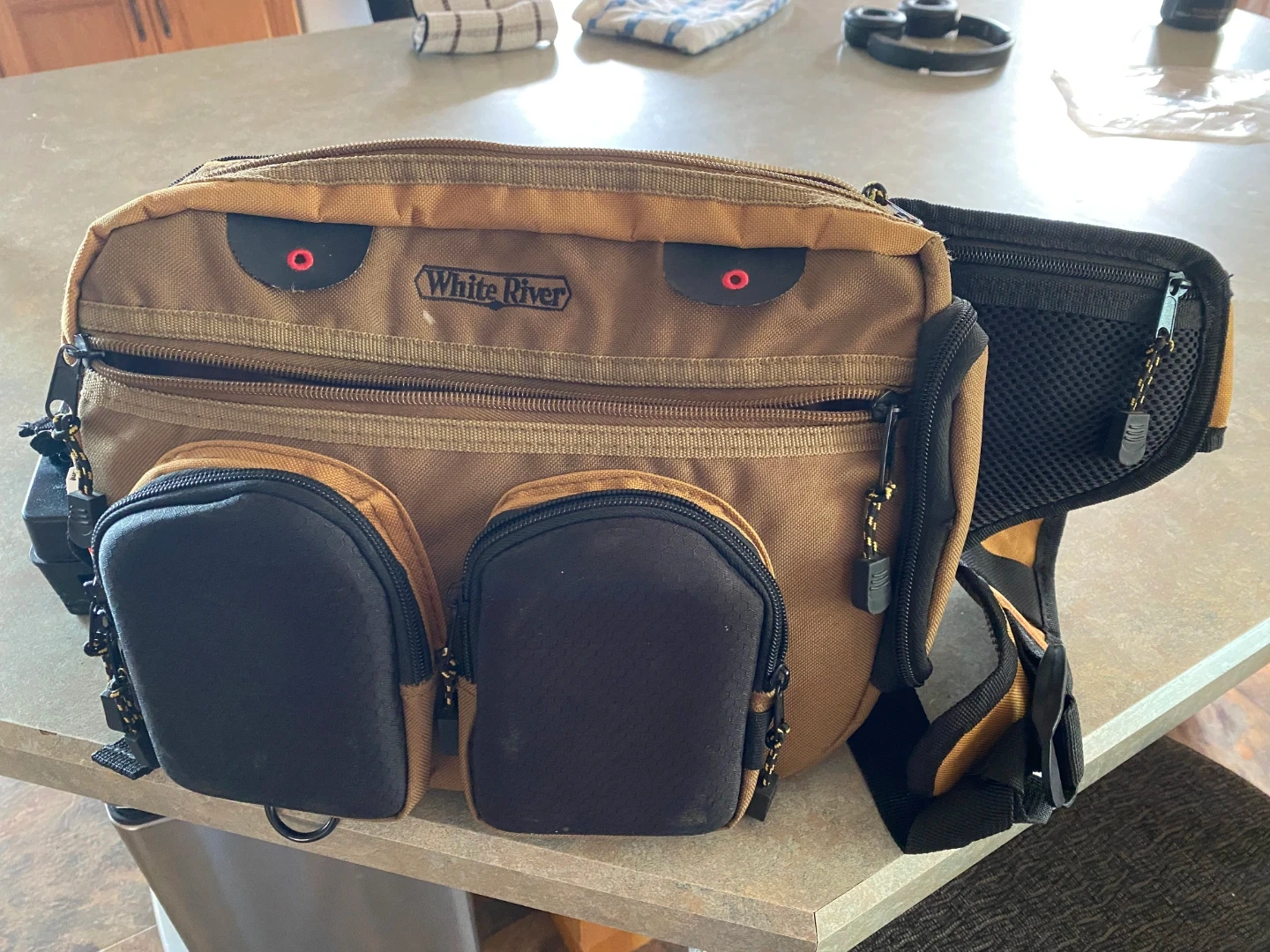 I'm selling a White River Fly Shop chest pack, perfect for fishing or outdoor activities! It features multiple pockets for organizing your gear. Also included is a Moultrie game camera. Both items are in good condition and ready for your next adventure
