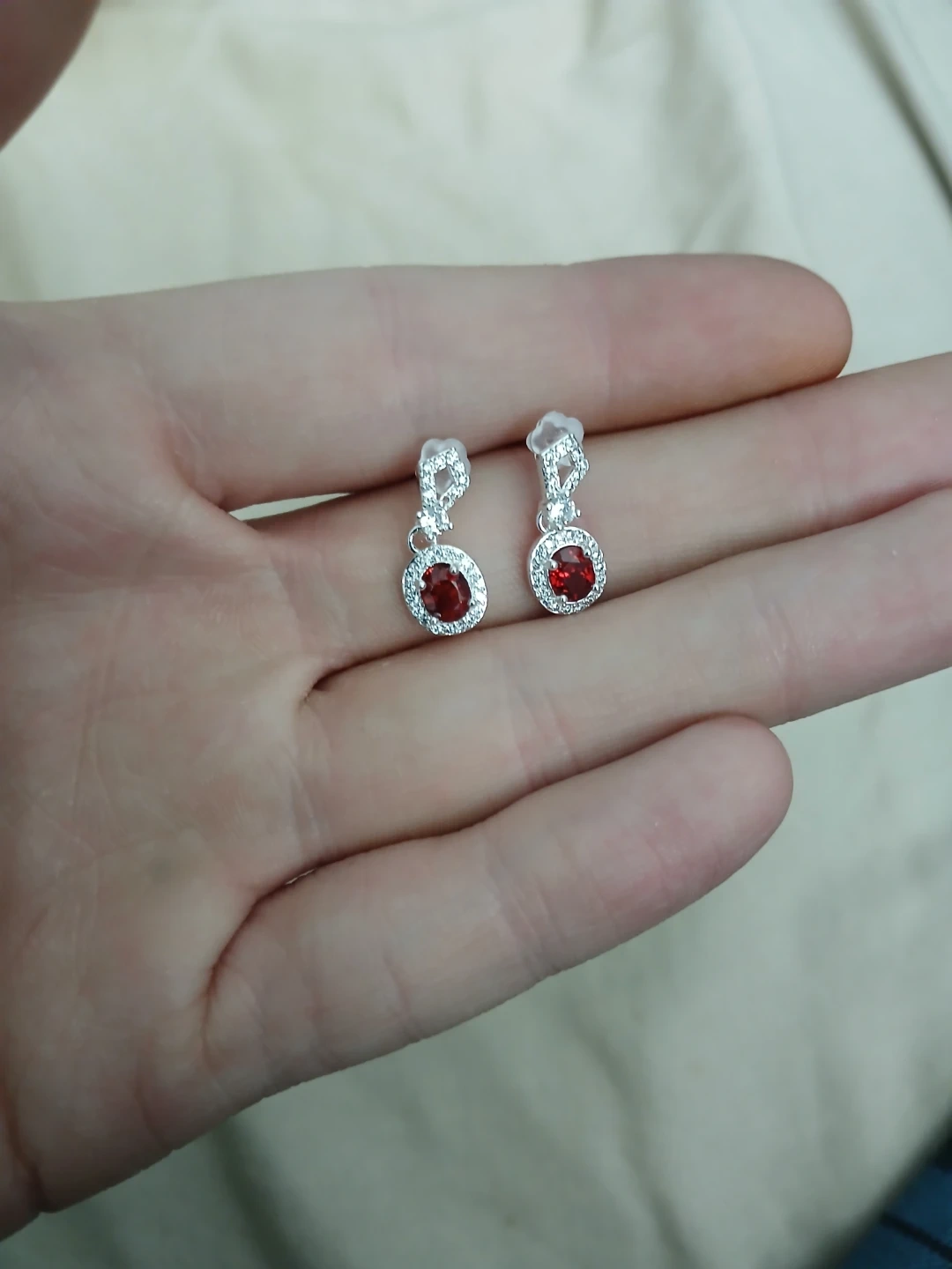 Brand new 925 silver and garnet dangling earrings. 1 carat per earring. Comes with extra backings. Cash only. Pick up or meet up in public place. Willing to bargain on the price.
