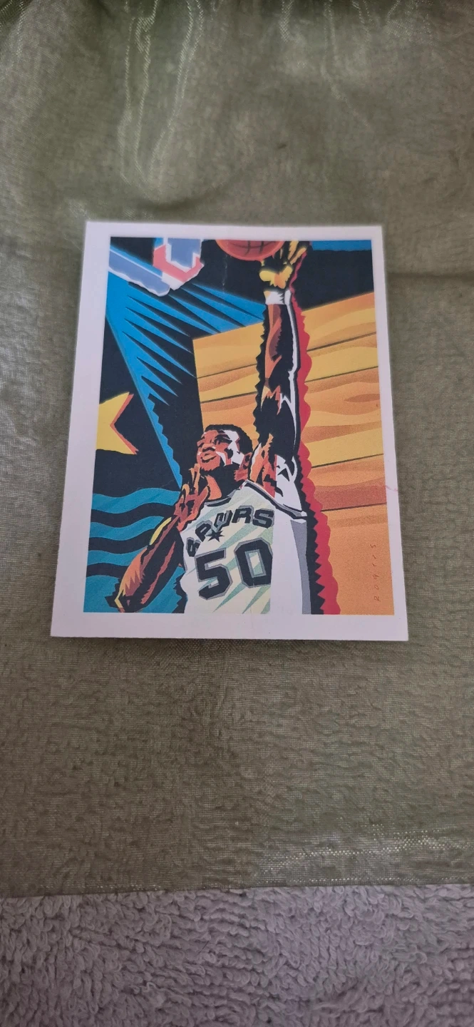 Selling a David Robinson NBA Hoops trading card! The back of the card lists other players from the San Antonio Spurs and is illustrated by Paul Rogers. A great collectible for any basketball fan!