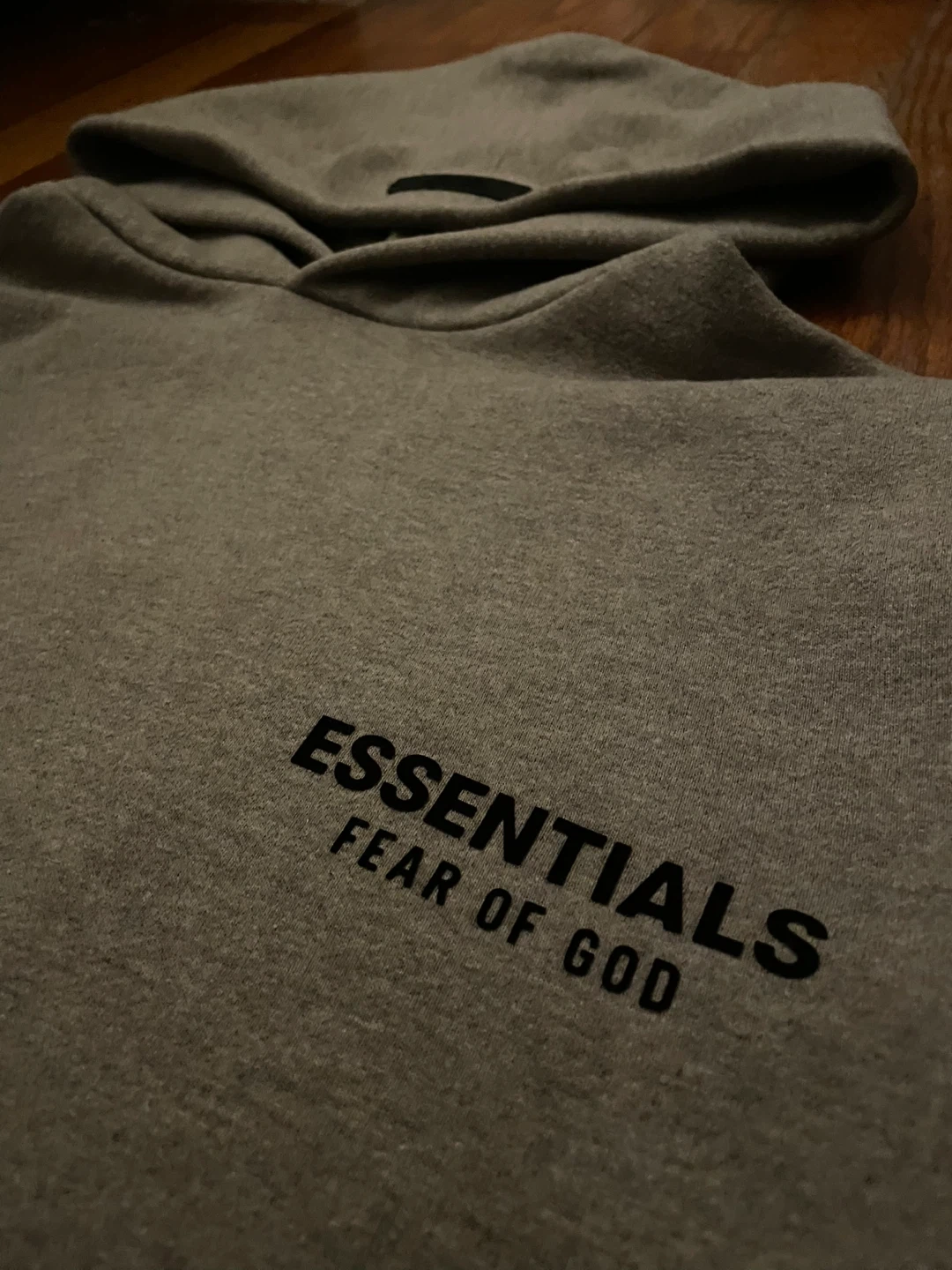 Essentials hoodie color Heather grey size small but fits baggy, worn a couple times still in great condition. Still has the tag and bag (Lowest not free)