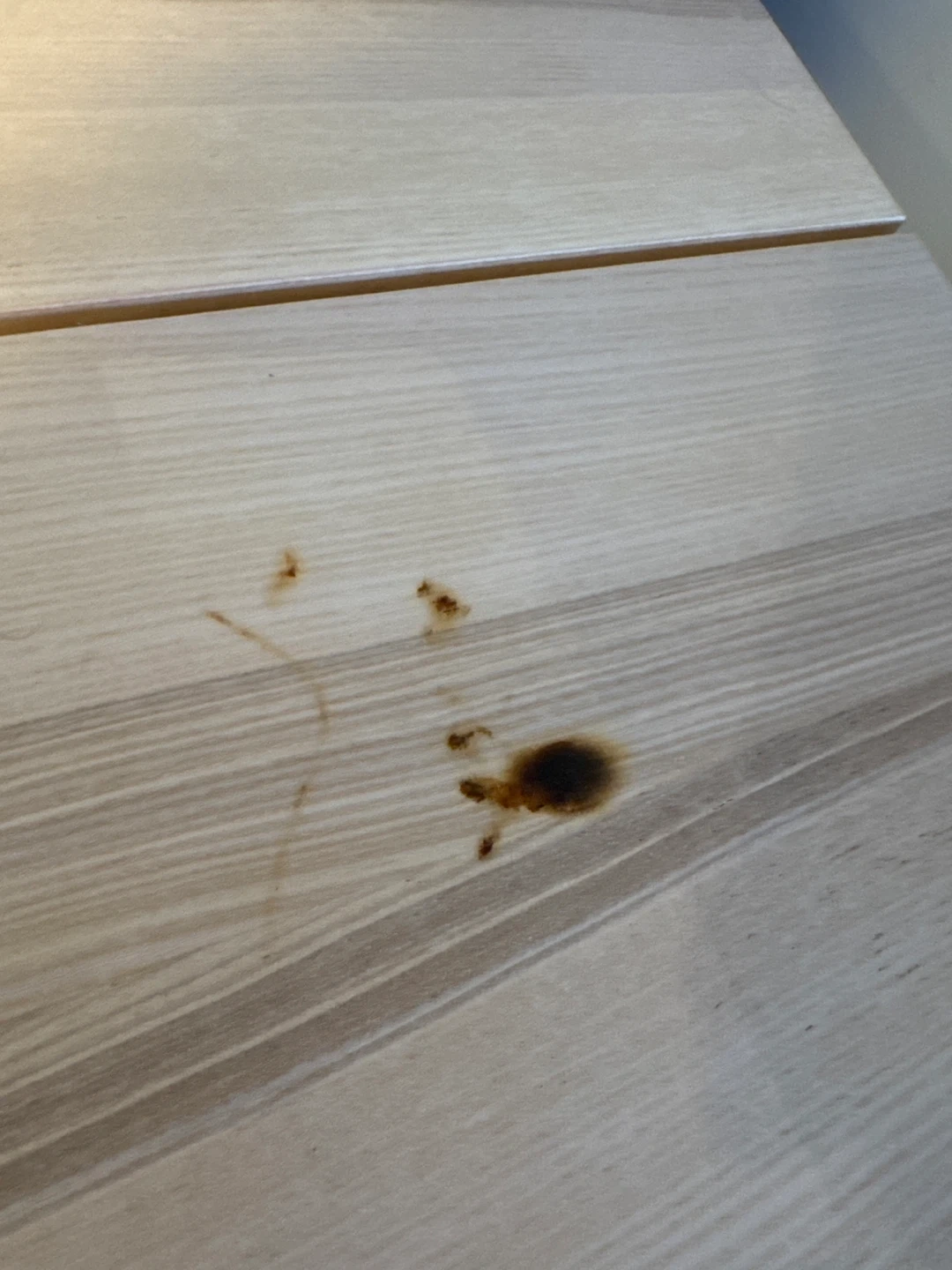 Please note there are small burn marks from a candle. Can be covered with a cloth.