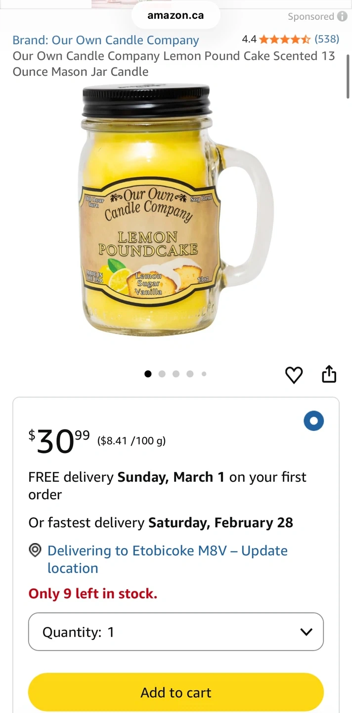 Our Own Candle Company Lemon Pound Cake scented jar candle