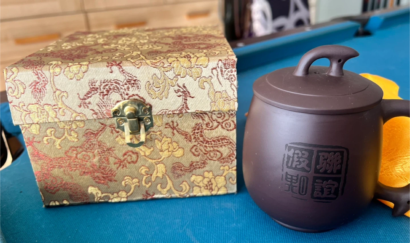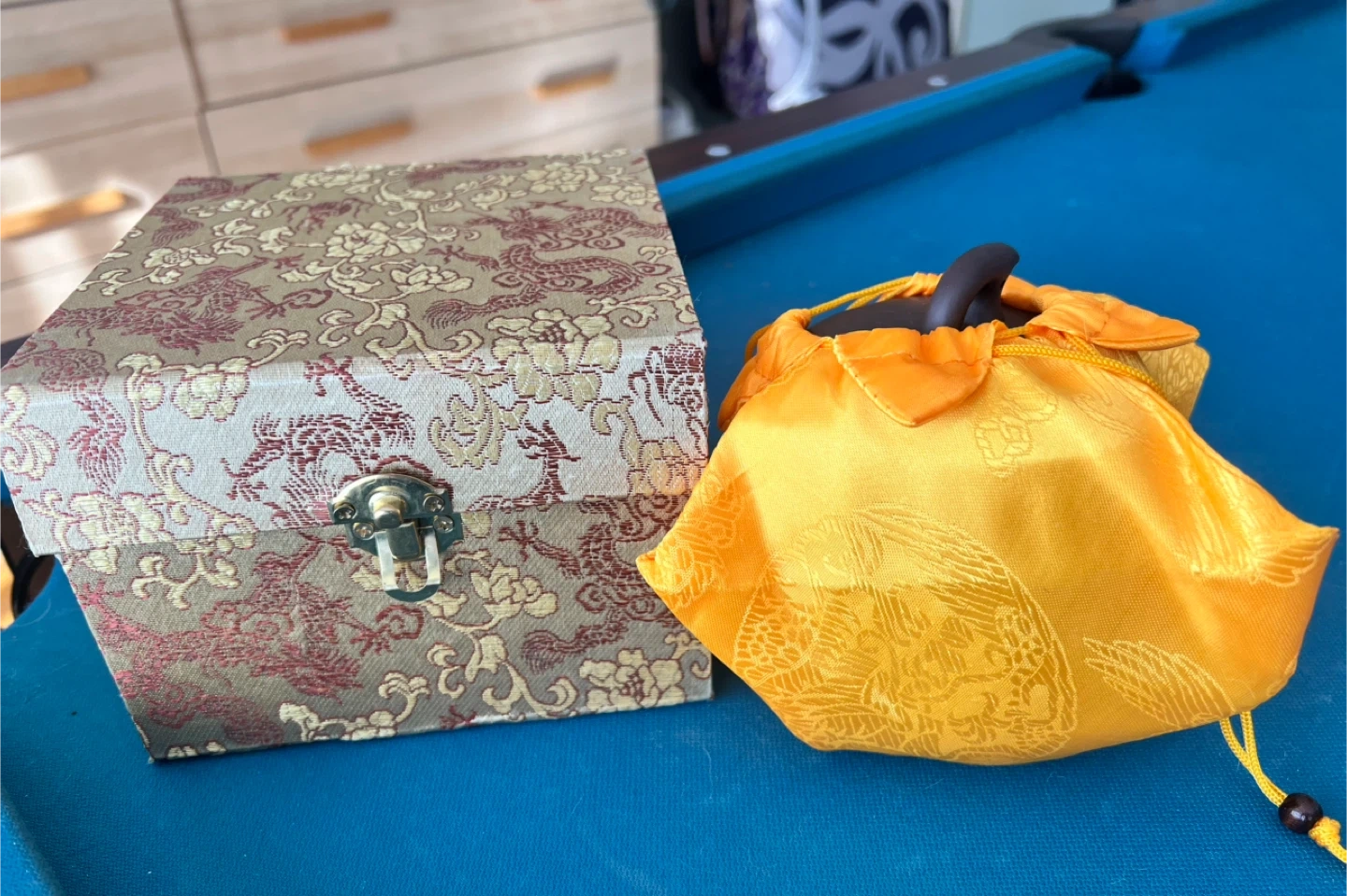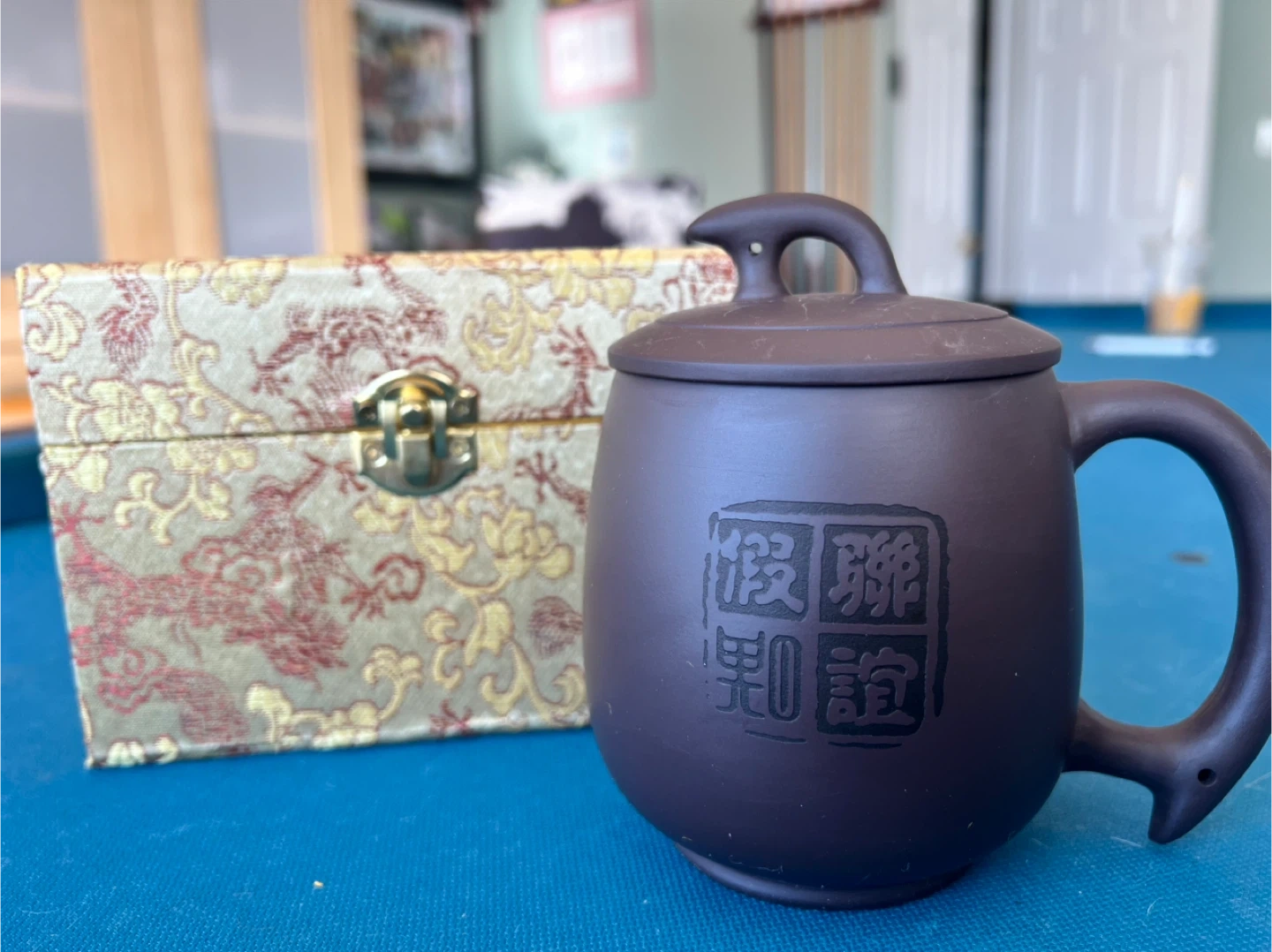 The unglazed clay is know for its ability to enhance the aroma and flavour of the tea. It comes with a decorative patterned box for storage and bag for the tea cup