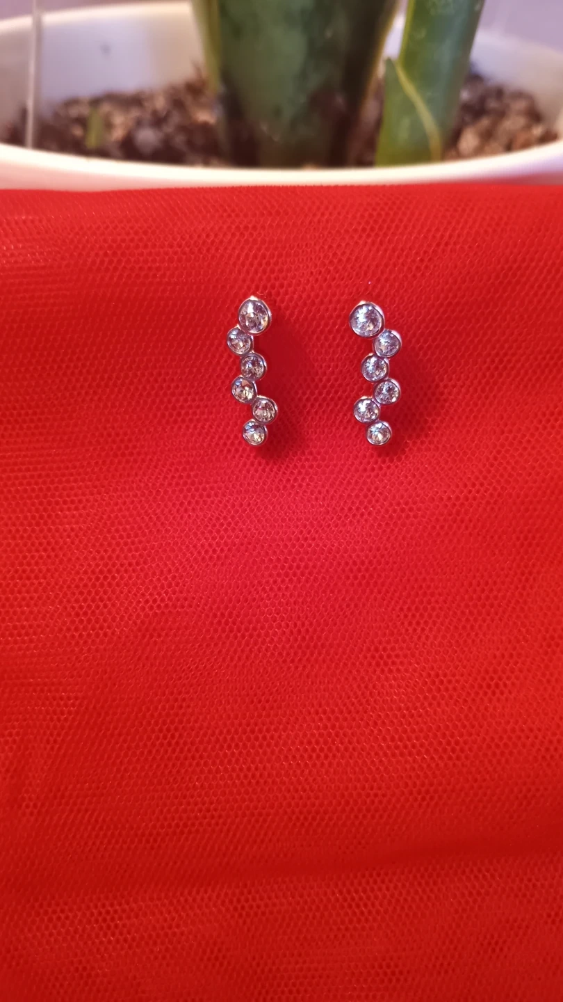 These earrings feature a curved design with multiple clear stones. They're lightweight and have a silver-tone finish. Add a touch of sparkle to any outfit!