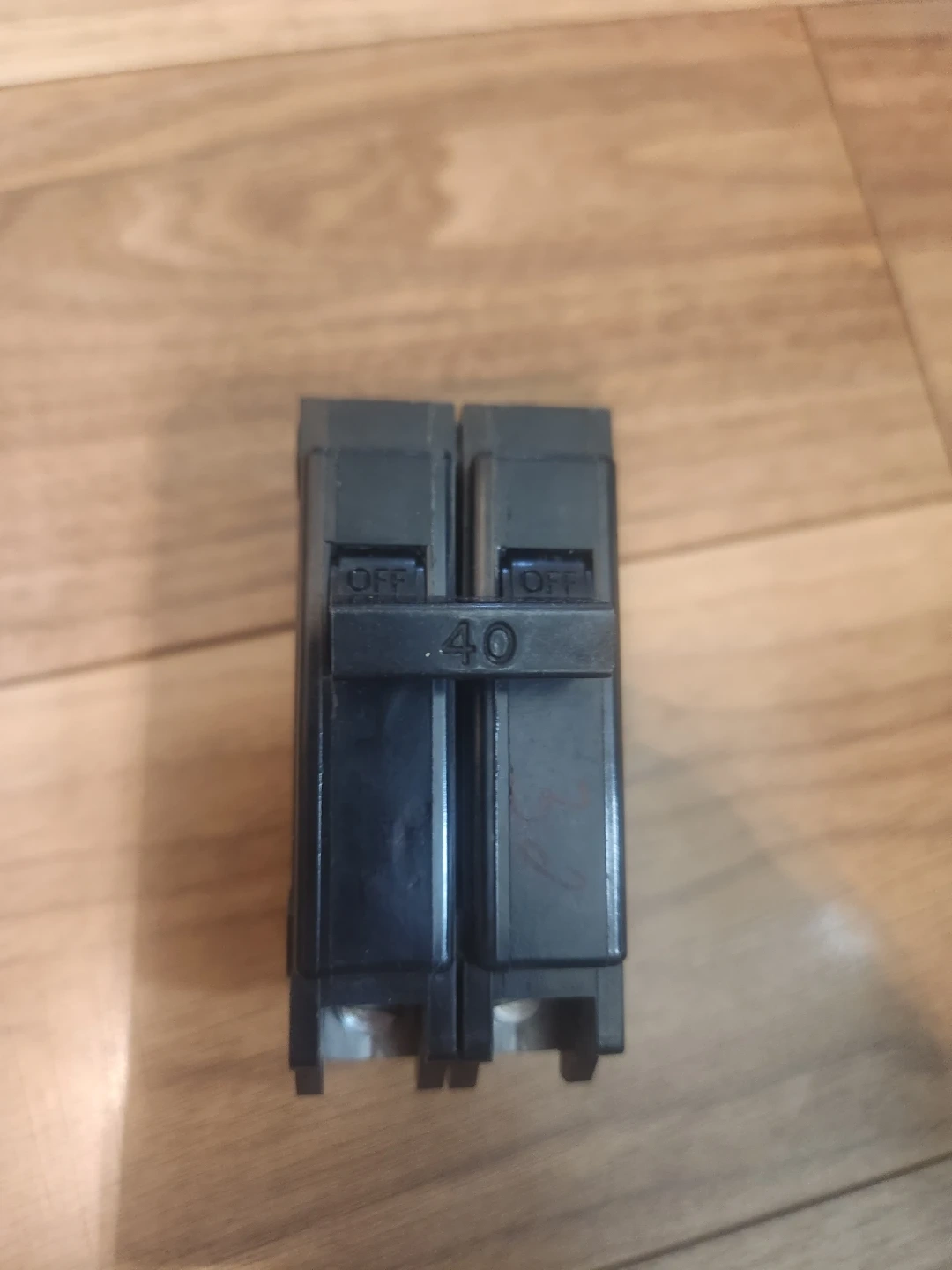 I am selling a used COMMANDER 40 amp double circuit breaker, perfect for various electrical applications. This breaker is in good working condition. It has a 40 amp capacity and is designed to protect your electrical circuits from overloads and short circuits. Grab it today to ensure your electrical system is safe and efficient! It is a used item, showing signs of regular wear.
