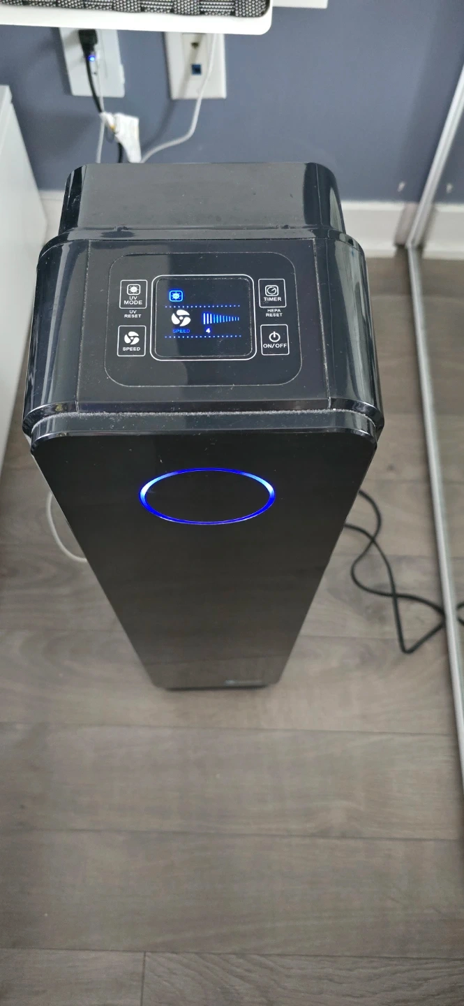 The GermGuardian AC5350B Elite 4-in-1 HEPA Filter UV-C Tower Air Purifier enhances air quality by eliminating allergens, odours, and germs, making it perfect for small to medium-sized rooms. Equipped with a True HEPA filter, it captures 99.97% of airborne particles, including dust, pollen, and pet dander.