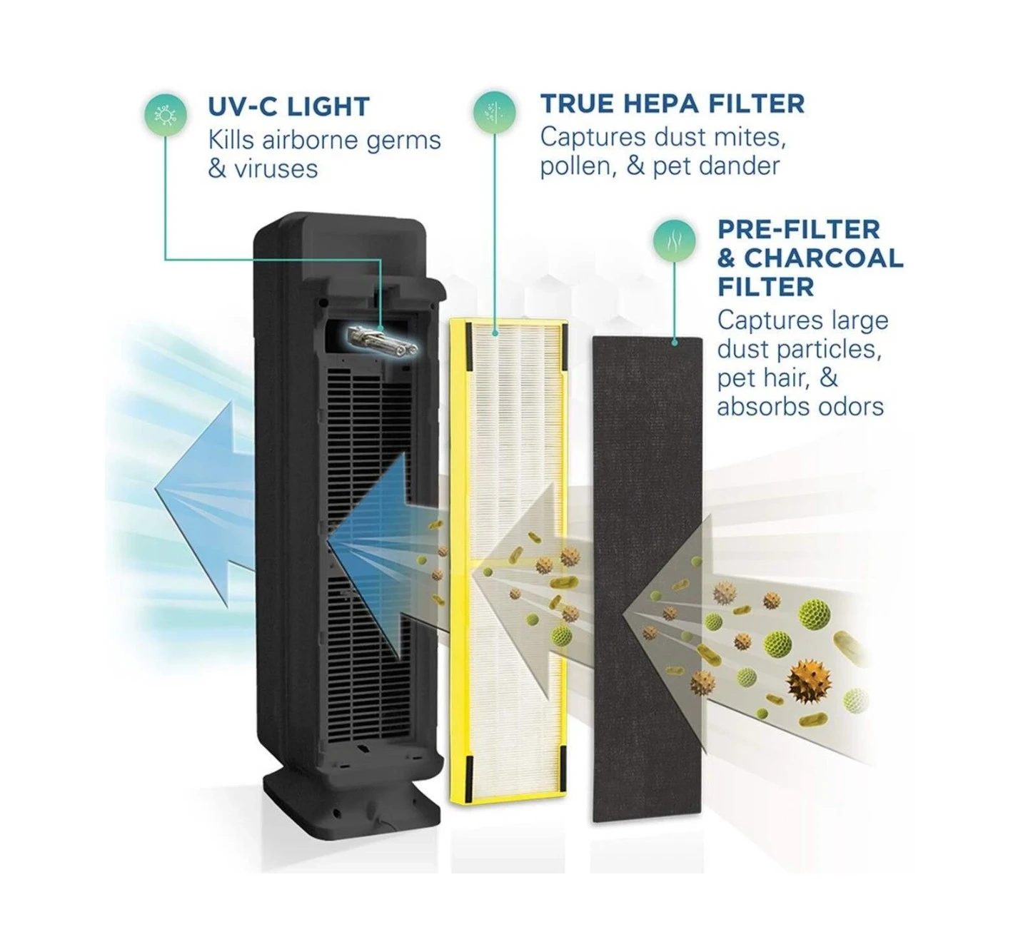 GermGuardian AC5350B HEPA Filter & UVC Tower Air Purifier,