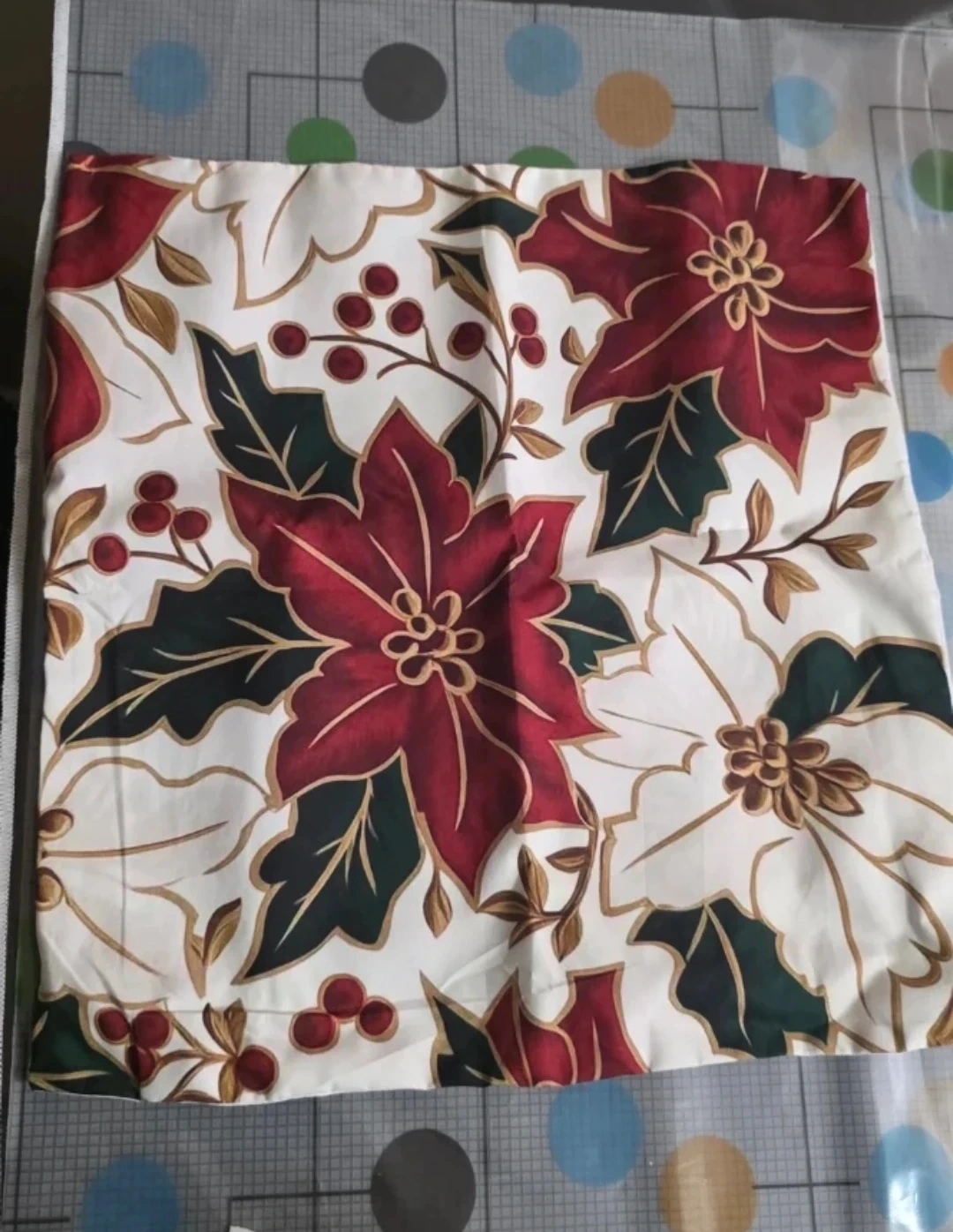 Set of two festive pillow covers featuring a poinsettia and holly berry design. These covers are made from a durable fabric. They're great for adding a touch of holiday cheer to your living room or bedroom!