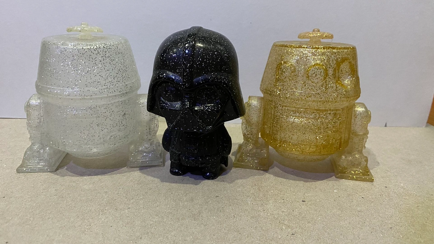 Star Wars Darth Vader Funko Hikari Mini Smuggler’s Bounty Black, Chopper Gold, and clear glitter Chopper figures. Good condition. NO BOX. Local pick up only in the UIC area. Character Family: Chopper. Brand: Funko.
