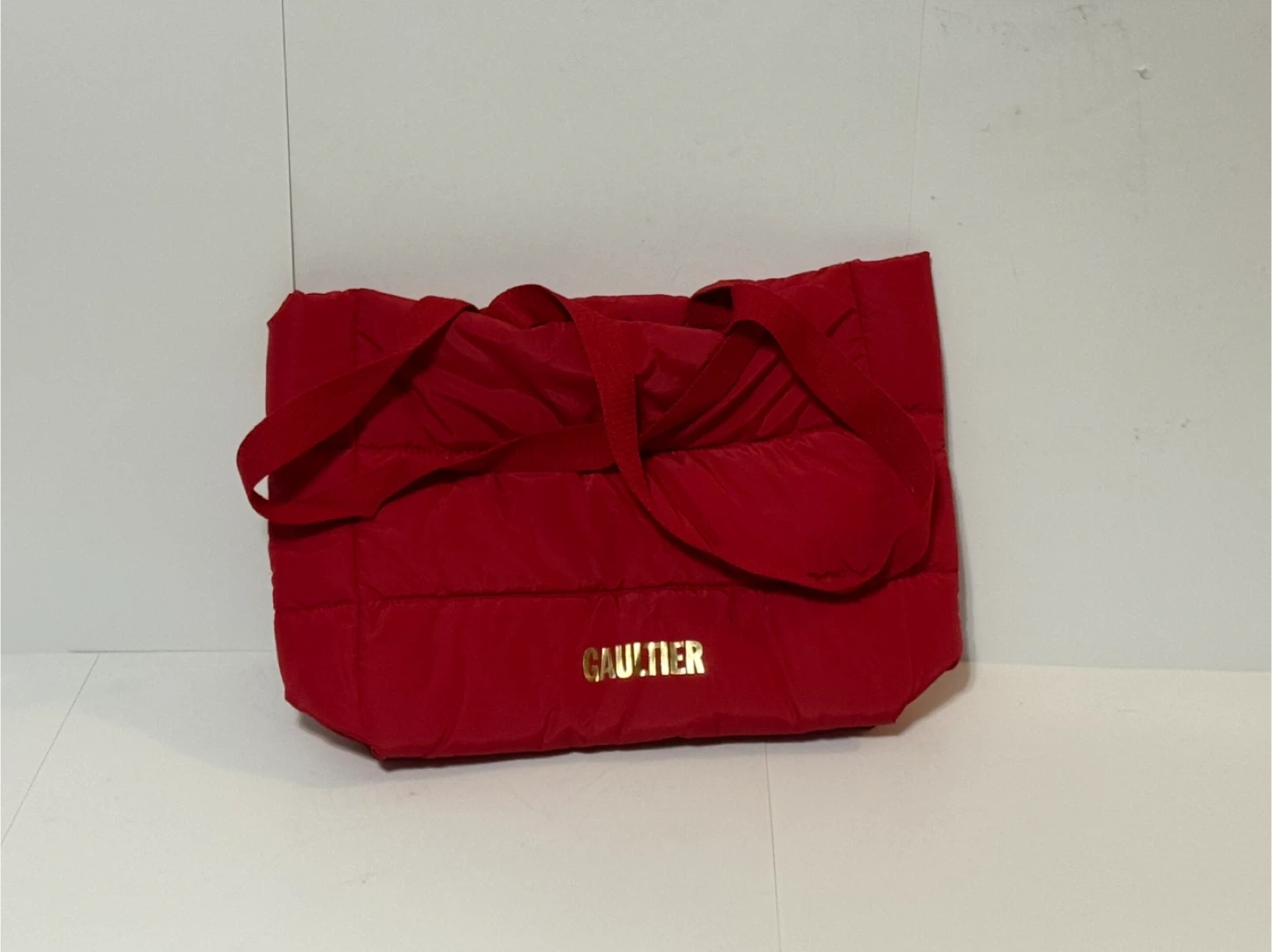65Selling a Jean Paul Gaultier red padded tote bag. It's in great condition and ready for a new home! The vibrant red colour and unique padded design make it a stylish accessory for any outfit.