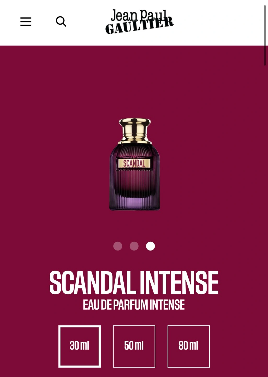 Selling a Jean Paul Gaultier Scandal Intense Eau de Parfum Intense. It's a 30ml bottle. Top notes include cardamom, heart notes include ylang, and base notes include vanilla