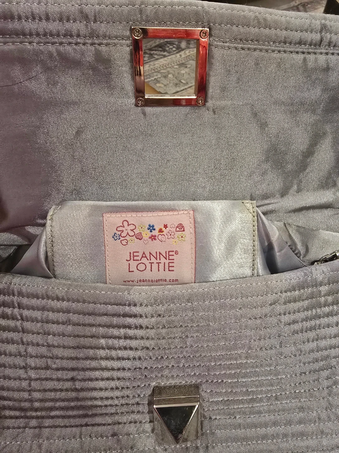 60Here's a stylish silver clutch bag from Jeanne Lottie! It features a chain strap and a unique design. Perfect for evenings out or special occasions!