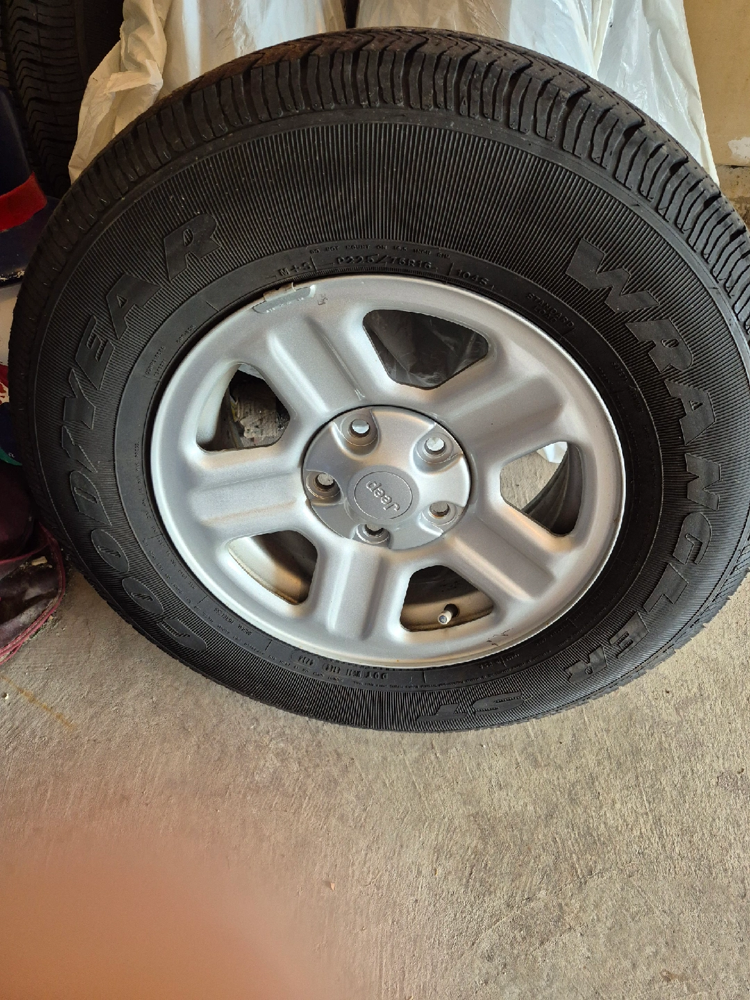 60Selling a Jeep Wrangler tire, size 225/75R16. It's in used condition, as shown in the photos. Perfect if you need a replacement! Also with rims no scat hes looks like new