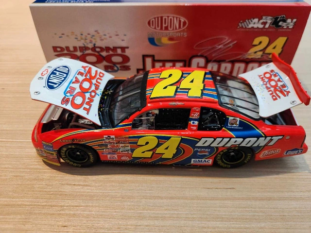 109Jeff Gordon DuPont 200th Anniversary limited edition livery 1:24 scale 2002 Chevy Monte Carlo die cast model. Asking $40 or best offer. Willing to trade for other Jeff Gordon or Dale Earnhardt Sr. cars or memorabilia. Can travel to you if you have something to trade. If the ad is up it's still available. Thanks.