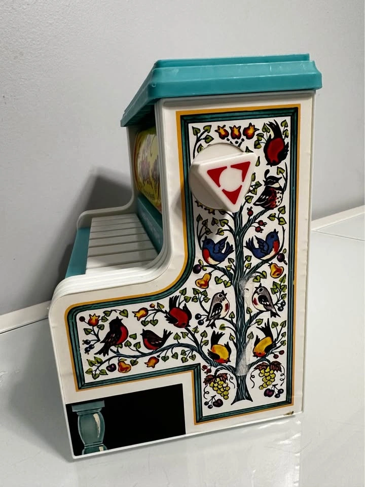 Classic Fisher Price Change-a-Tune Piano. This vintage toy has 3 tunes. Front has the 'Pop! Goes the Weasel' design. Side features a colorful bird and tree graphic. All keys present and clean. Excellent condition. Beautiful melody! Pickup only in COQUITLAM, Westwood Plateau, behind IGA.
