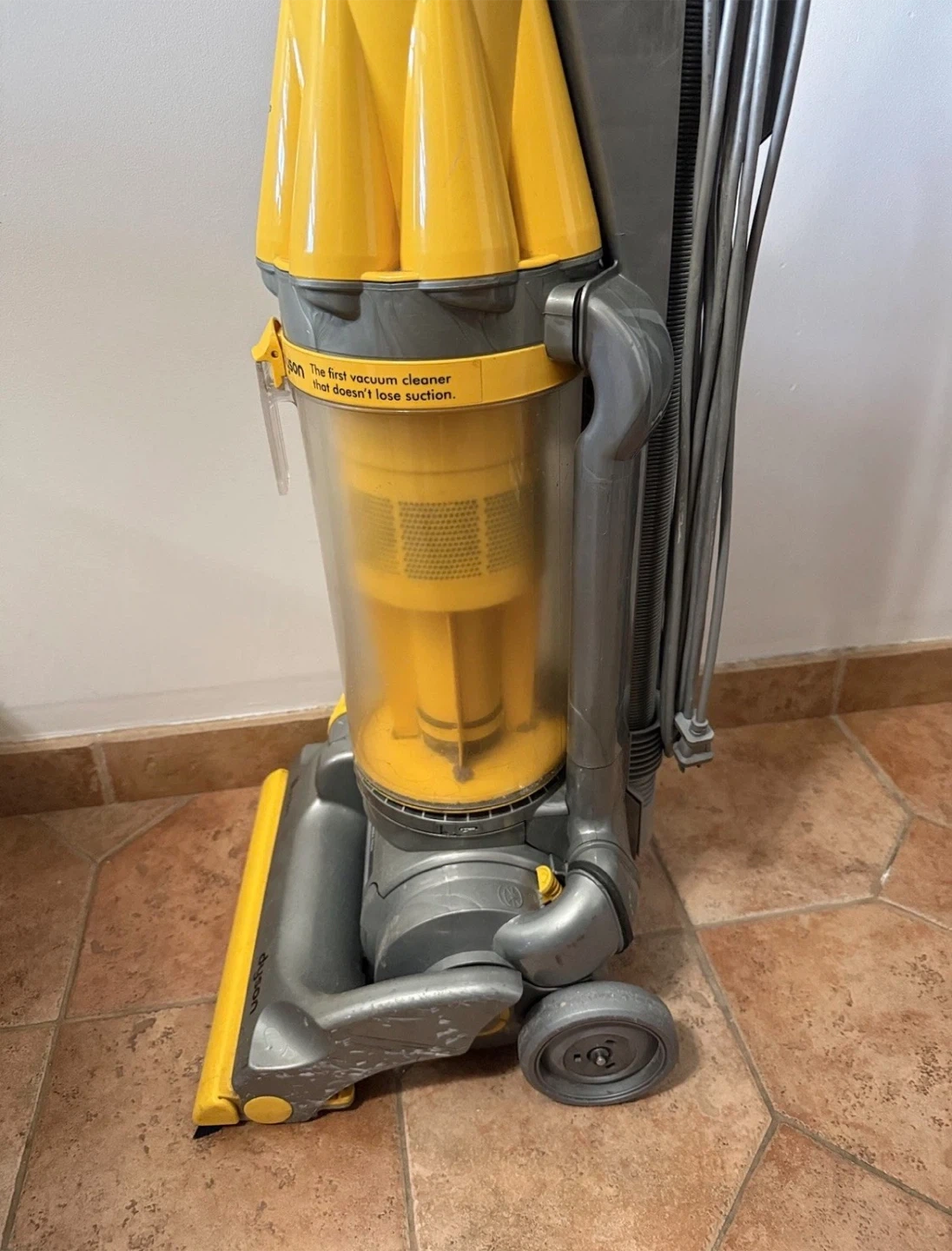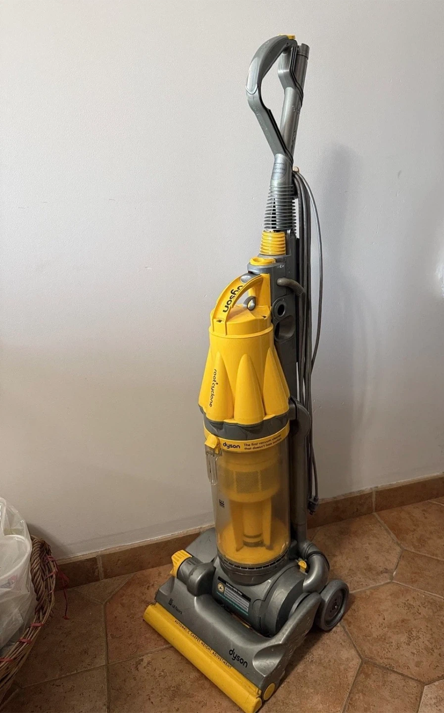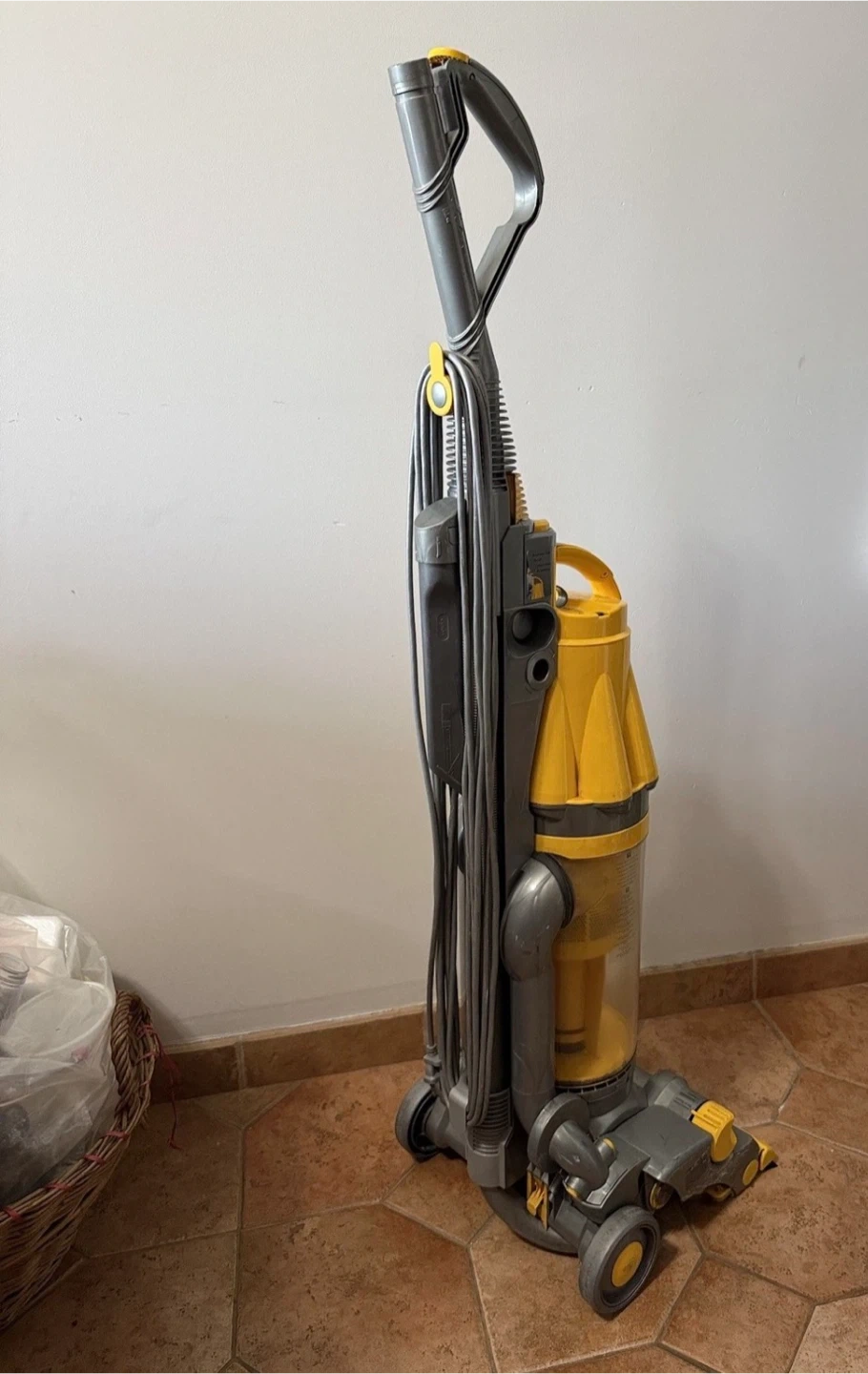 This corded vacuum cleaner is designed for efficient cleaning with its telescopic handle and bagless design, making it a convenient and durable choice for household cleaning. Made in Malaysia, this Dyson vacuum cleaner is a reliable option for maintaining a clean home.