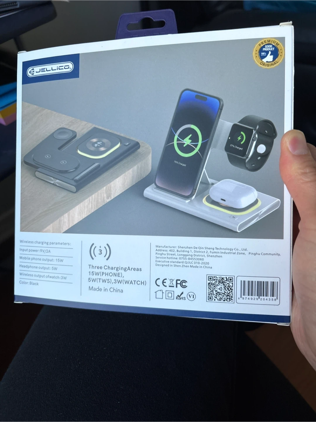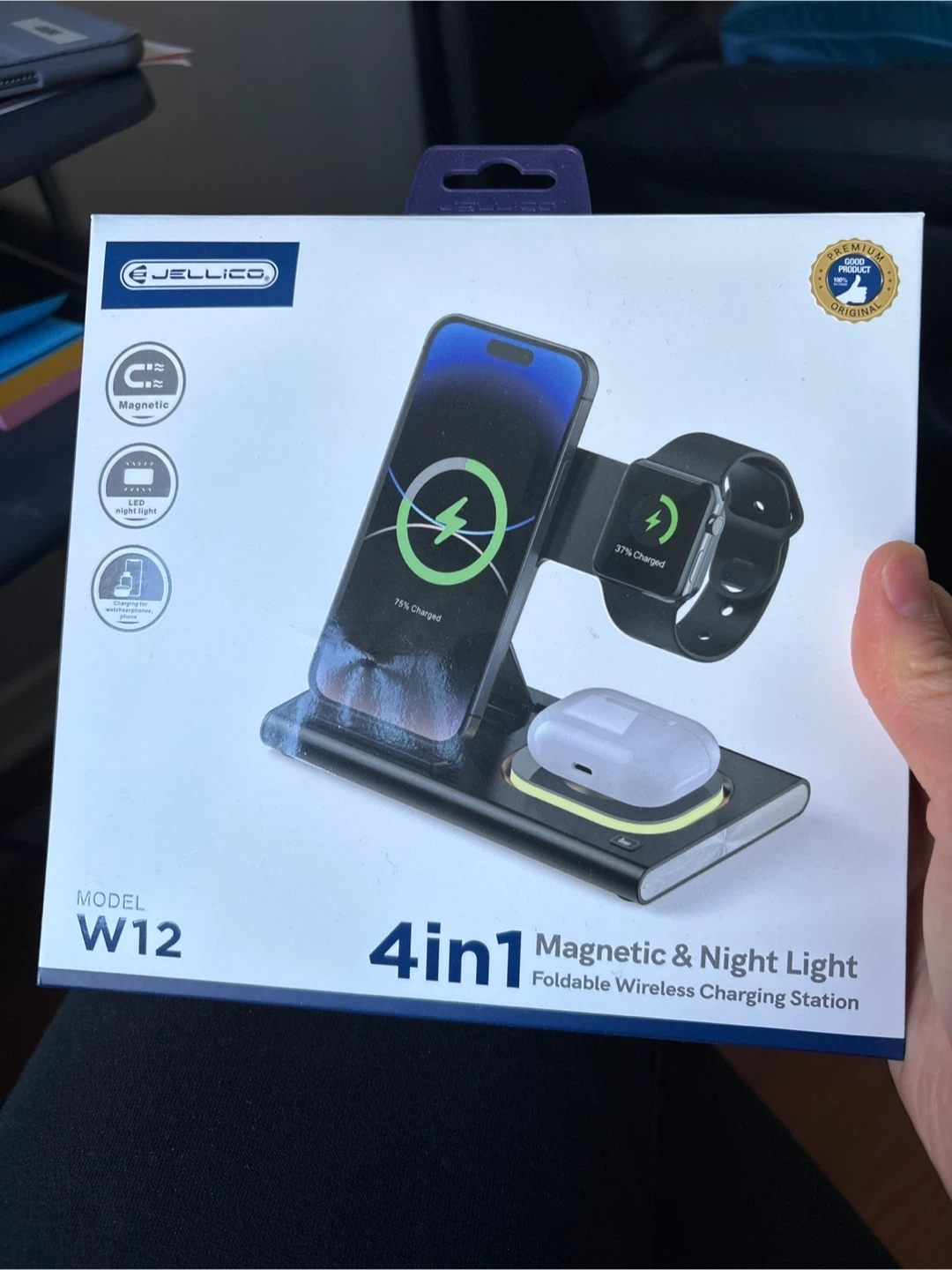15Selling a brand new Jellico W12 4-in-1 Magnetic & Night Light Foldable Wireless Charging Station! It features three charging areas: 15W for phone, 5W for TWS (earbuds), and 3W for watch. Key features include: - Magnetic design - Night light - Foldable for easy storage and portability Input power: 9V/2A Mobile phone output: 15W Headphone output: 5W Wireless output of watch: 3W Colour: Black Comes in the original box