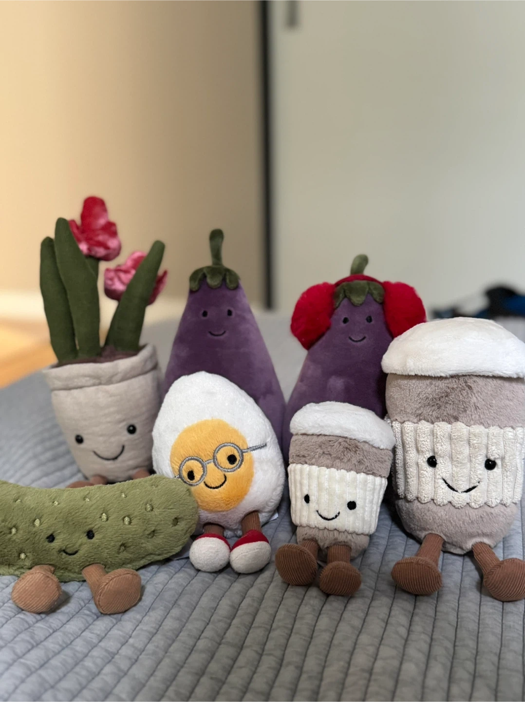 13Selling a collection of adorable Jellycat Amuseable plush toys! - Amuseable Coffee + Keychain (take both for $45) - Amuseable Egg ($25) - Pending - Amuseable Pickle ($20) - Pending - Amuseable Tulip ($25) - sold - Amuseable Eggplants ($50) - Pending