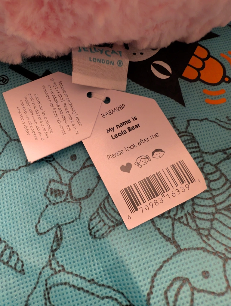 23The tags are still attached, so it's ready for a new home. Perfect for cuddling or as a sweet gift size medium, dustbag included