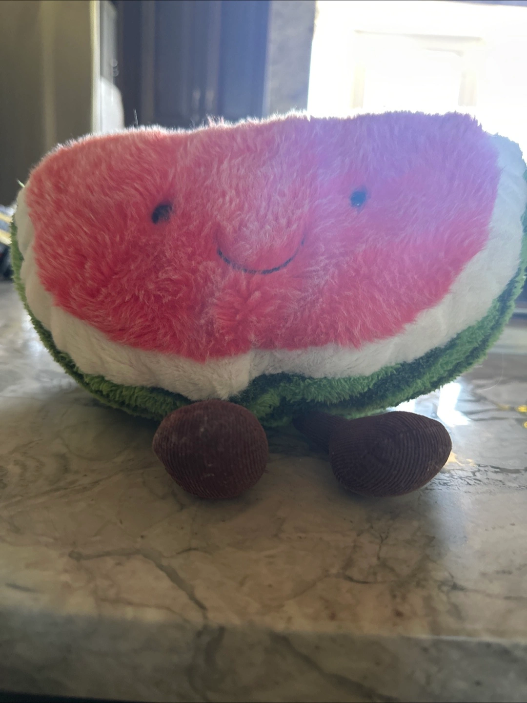 Selling a super cute Jellycat Watermelon plush! It's in great condition and ready for a new home. This plush is soft and cuddly, perfect for kids or anyone who loves adorable fruit-themed toys