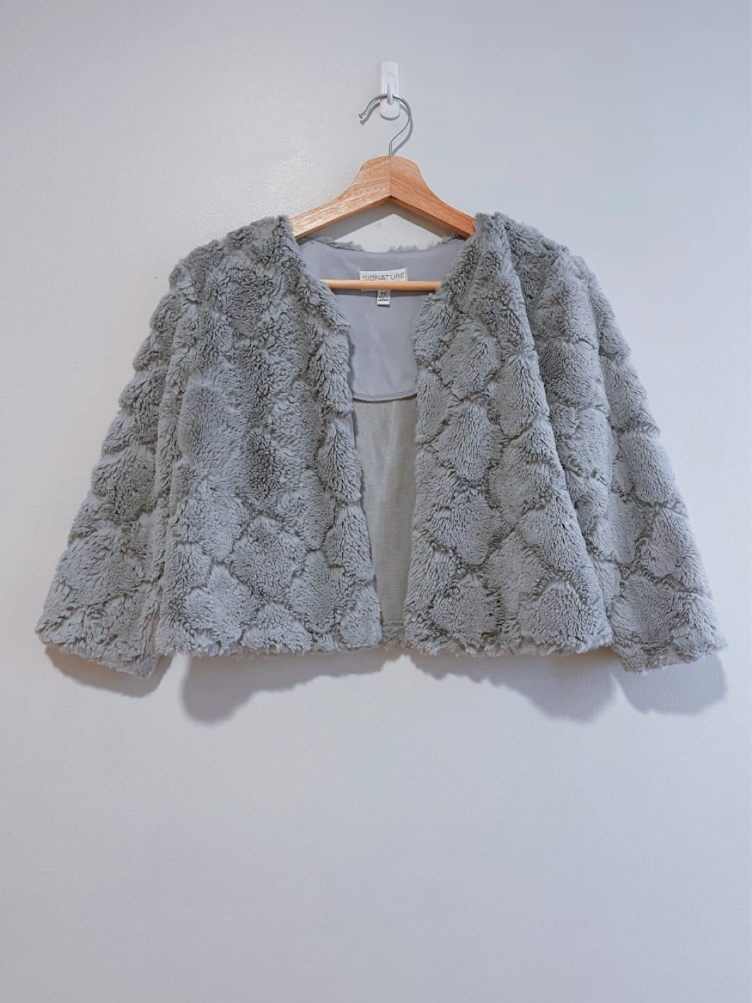 Cropped faux fur jacket with three-quarter sleeve-Size S