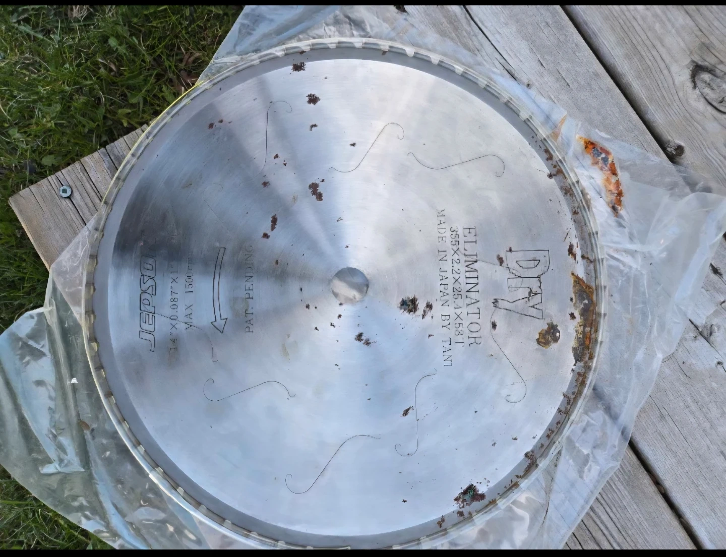 10Selling a Jepso Eliminator saw blade. It's a 14" blade with dimensions of 355 x 2.2 x 25.4 x 58T. Max 1500rpm. Made in Japan by Tani