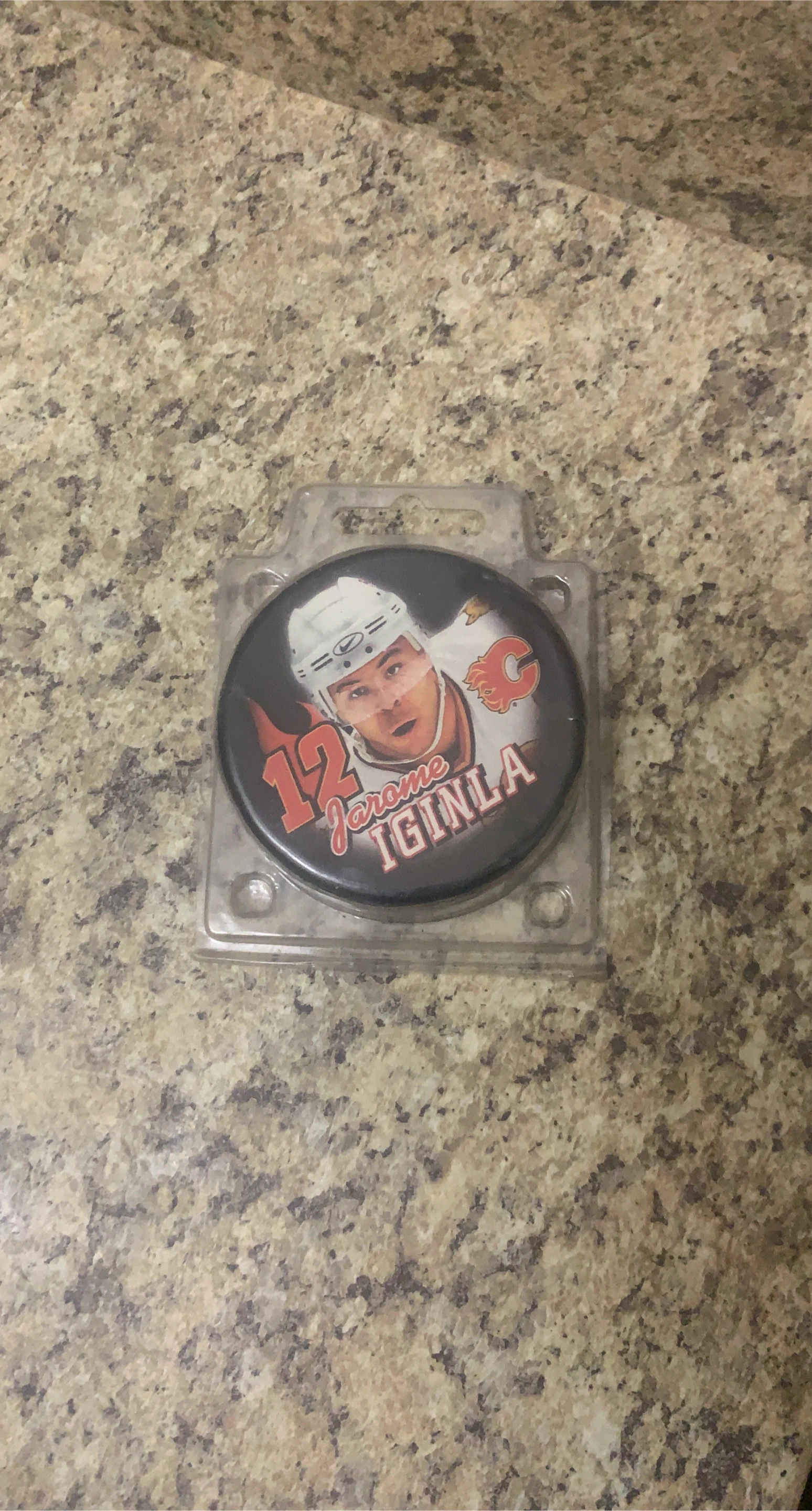 70Selling a Jerome Iginla Calgary Flames hockey puck. It's an officially licensed product and comes in its original packaging