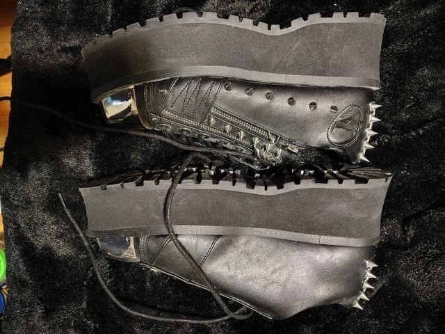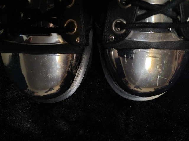 Purchased for a concert but got sick and never ended up wearing them. Shoes are in great condition. Steel on the toes has some excess glue and marks but that's how they came. Only ever worn for a few minutes trying them on and walking around my apartment.