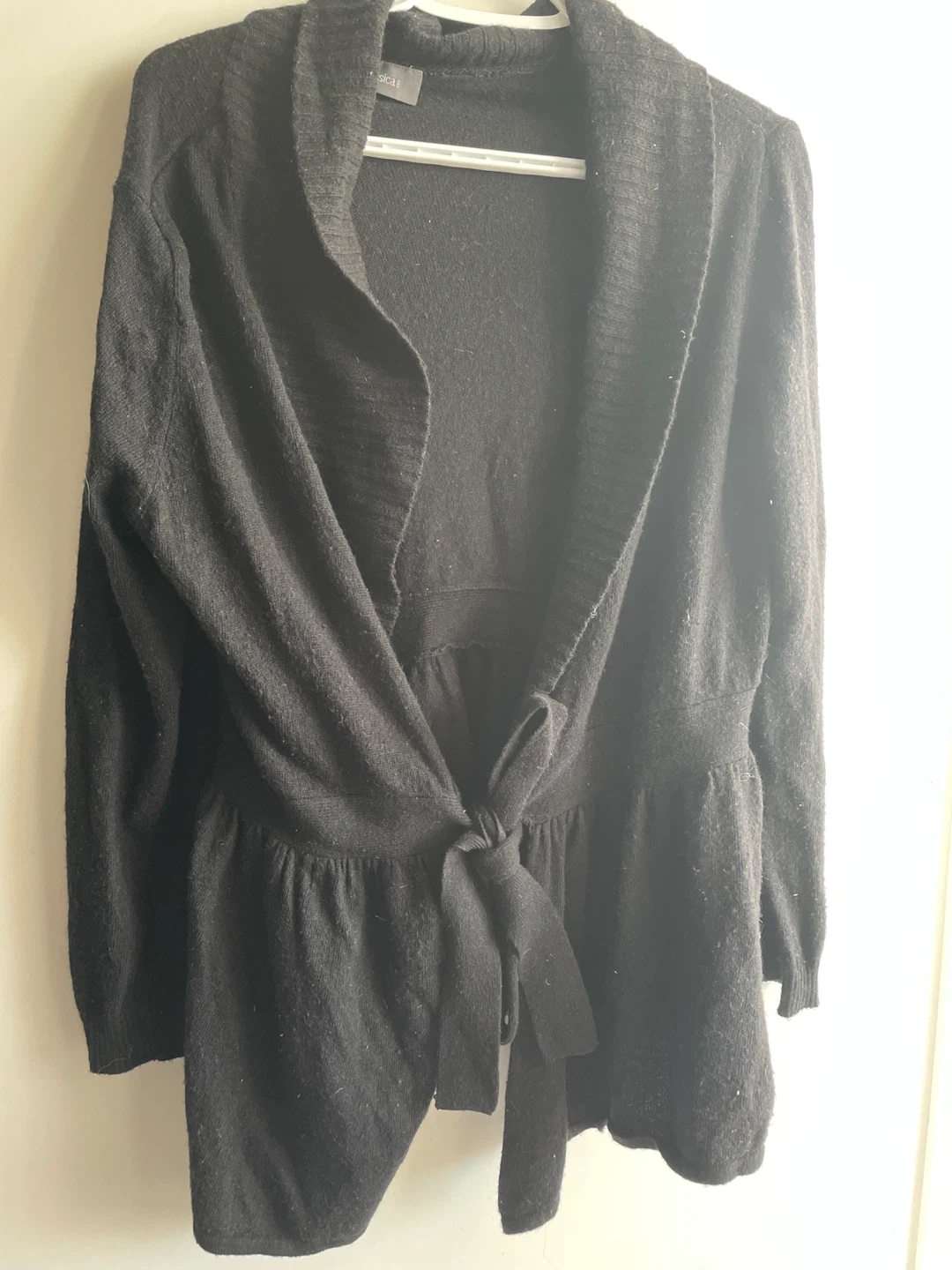 607Cozy black cardigan from Jessica. It features a tie at the waist and a comfortable fit. Perfect for layering on cooler days!