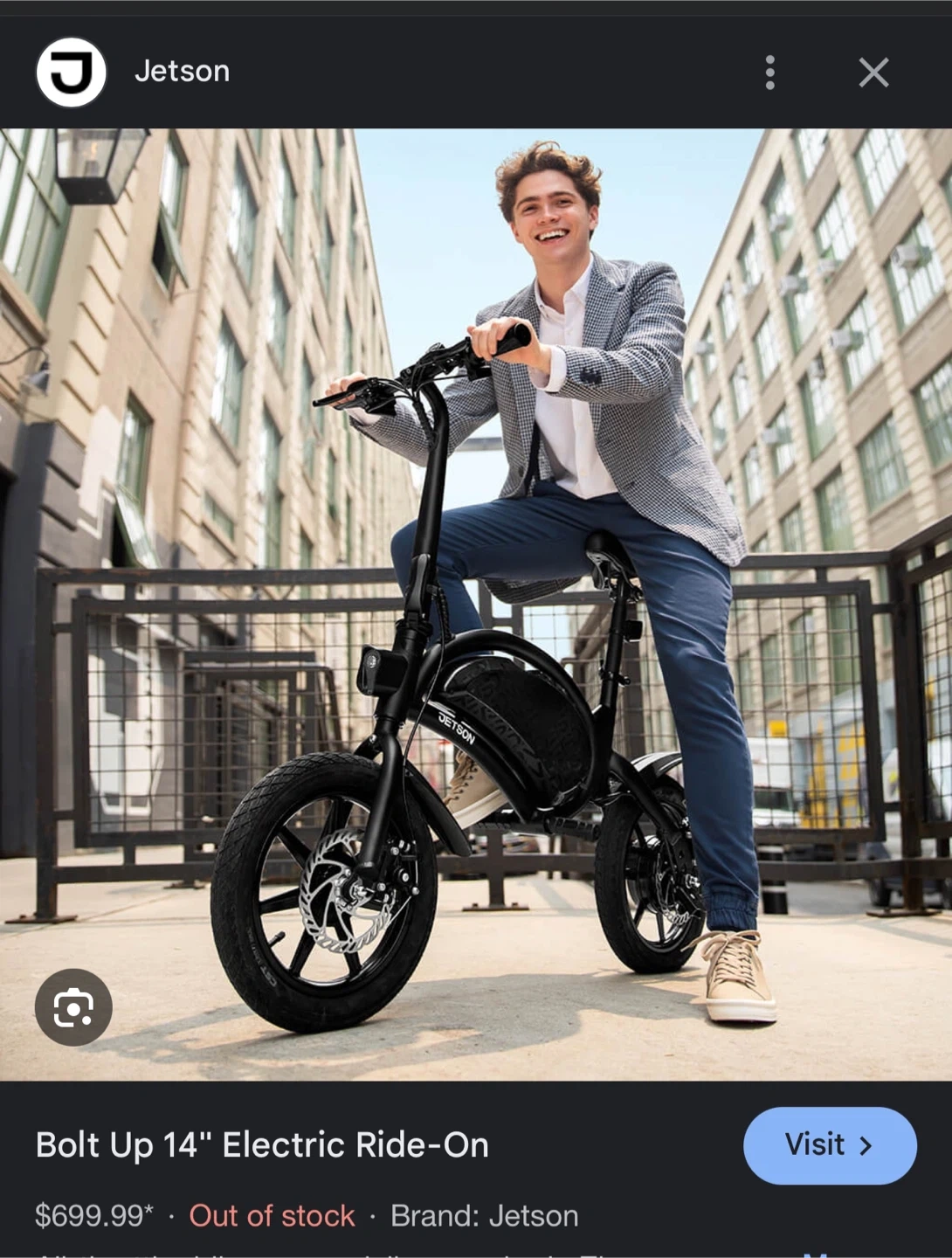 Selling a Jetson electric bike and a white helmet. Both are in good condition and ready for a new owner! Perfect for getting around town or enjoying a leisurely ride. Selling bicycle Model- jetson bolt pro Bicycle comes with it a charger, helmet and phone holder No issues at all Bicycle like brand new, reason for sale , don’t have time ride on it Barely used Bicycle is foldable so you can easy carry on your car The bicycle can goes 25km/h without pedal assist , and range around 40km With pedal Assist can go More then 40km/h Location for pick up near Columbia skytrain station