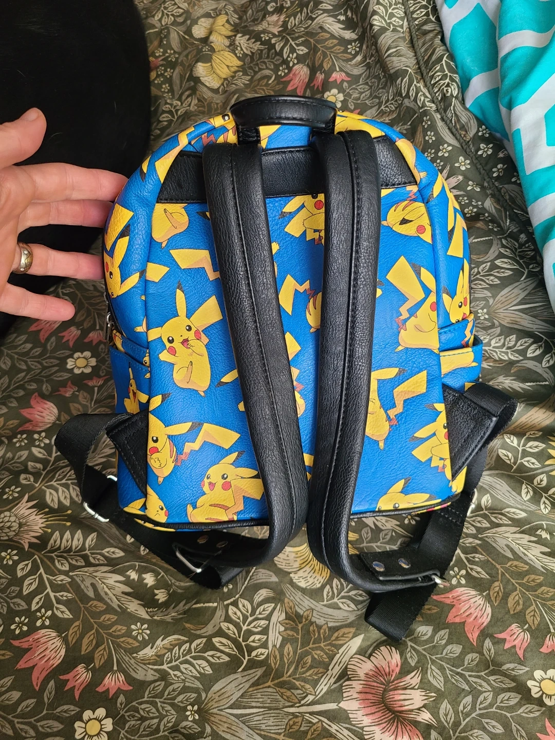 This Loungefly mini backpack features a fun all-over Pikachu print. It's made from faux leather and has adjustable straps for comfort. Features one exterior pocket. It's a great size for essentials!