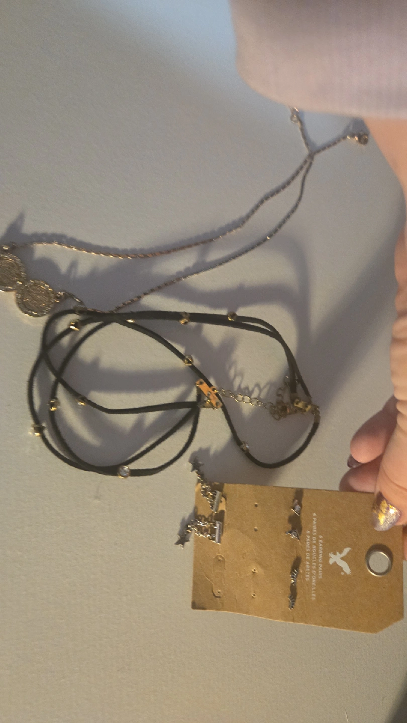 40Selling a jewellery lot that includes a necklace and a pair of handmade earrings. The earrings have a cute design and are brand new!