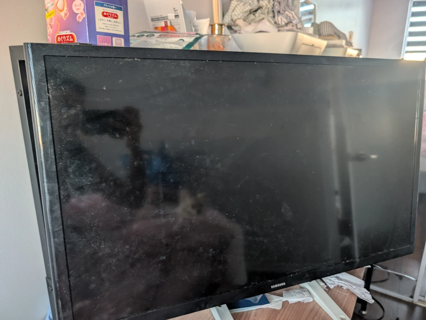 Samsung flat screen television. It's a black television. Perfect for watching your favourite shows! Not a smart tv but can sell the Roku attachment I have that makes it smart apart from $25