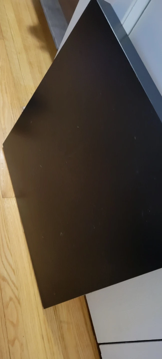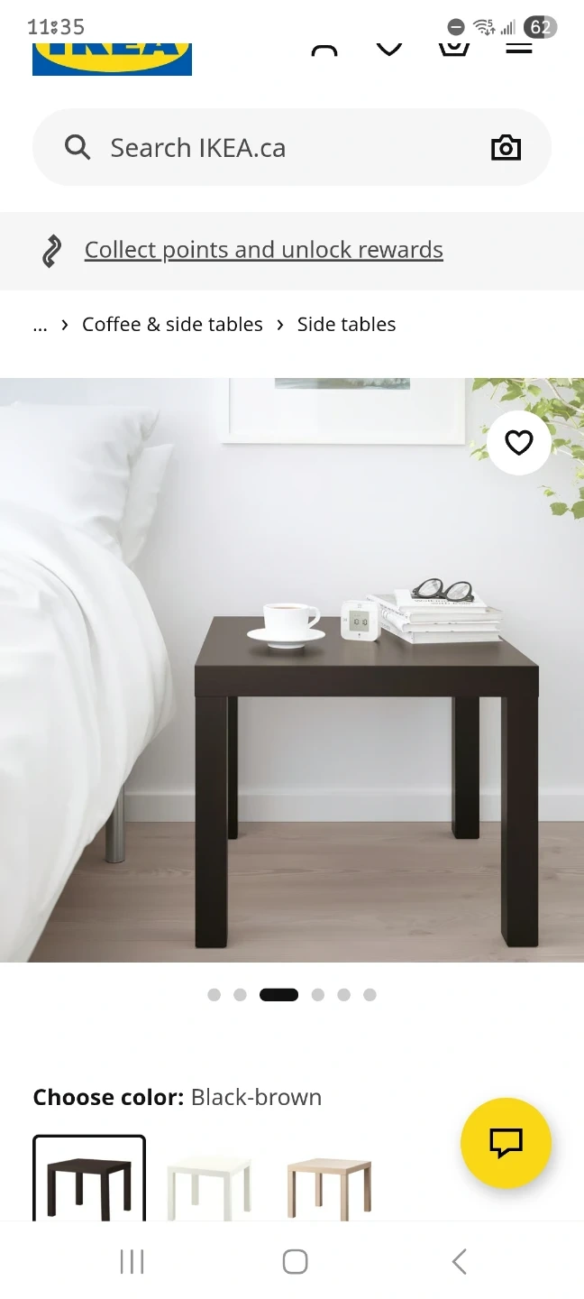 This is a used IKEA side table in black-brown. It's a sturdy unit that's great for holding lamps, books, or drinks. Easy to clean and maintain.