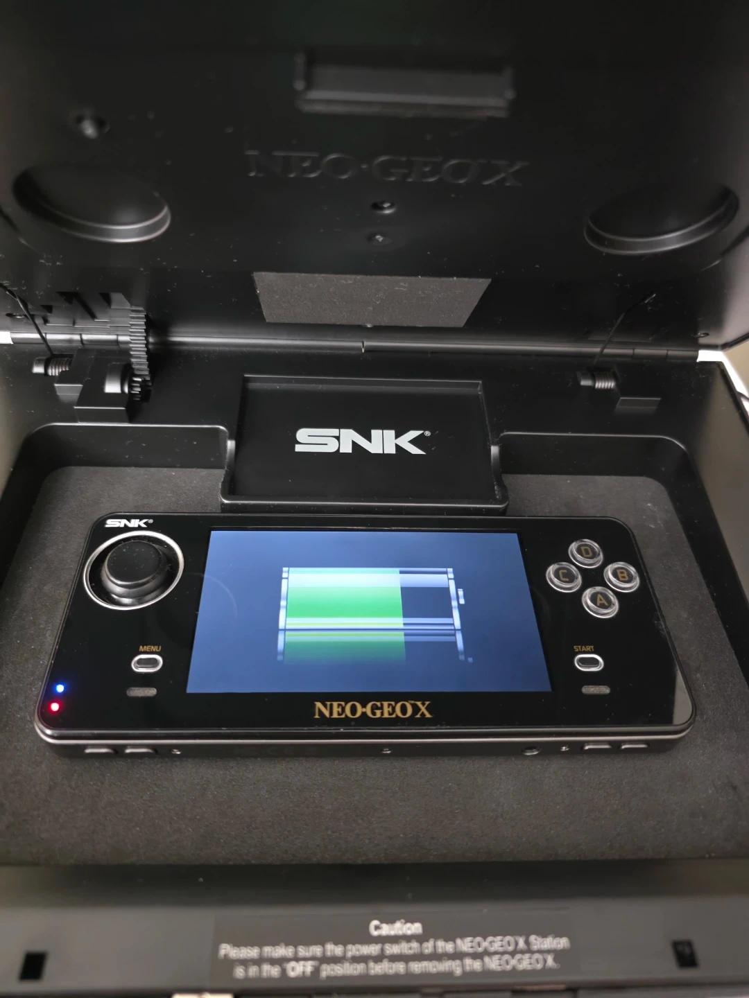 Up for grabs is a SNK Neo Geo X Gold Limited Edition handheld console! This is a revolutionary system that's a handheld and a console with HDMI capabilities. It's designed for an authentic arcade experience on the go. Includes original arcade stick, Neo Geo X handheld, Neo Geo X station, power adapter, and AV cable. Selling for great price