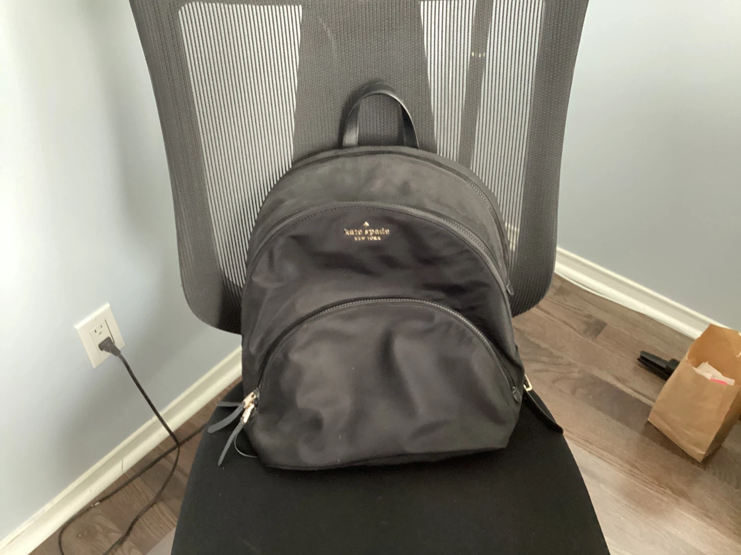 This is a black nylon backpack from Kate Spade. It's made with durable nylon and has leather accents. Plenty of room for your everyday essentials!