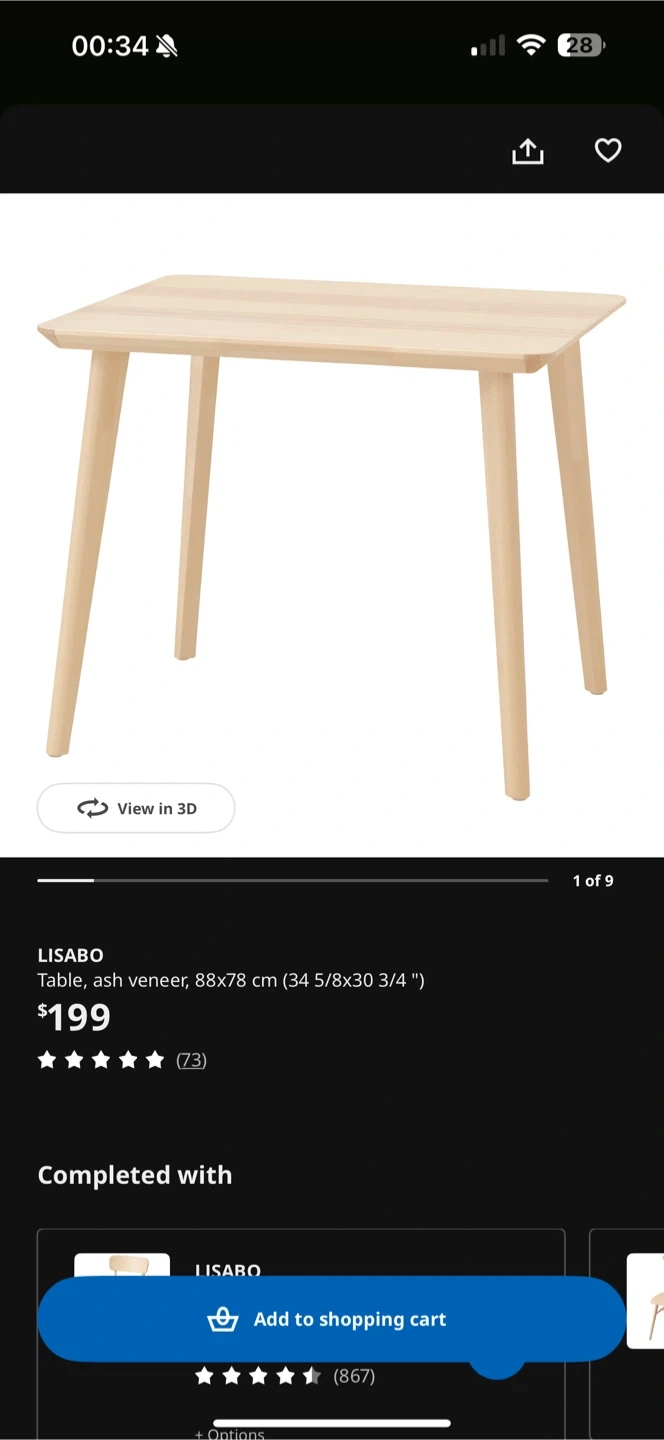 IKEA LISABO Table, Ash Veneer