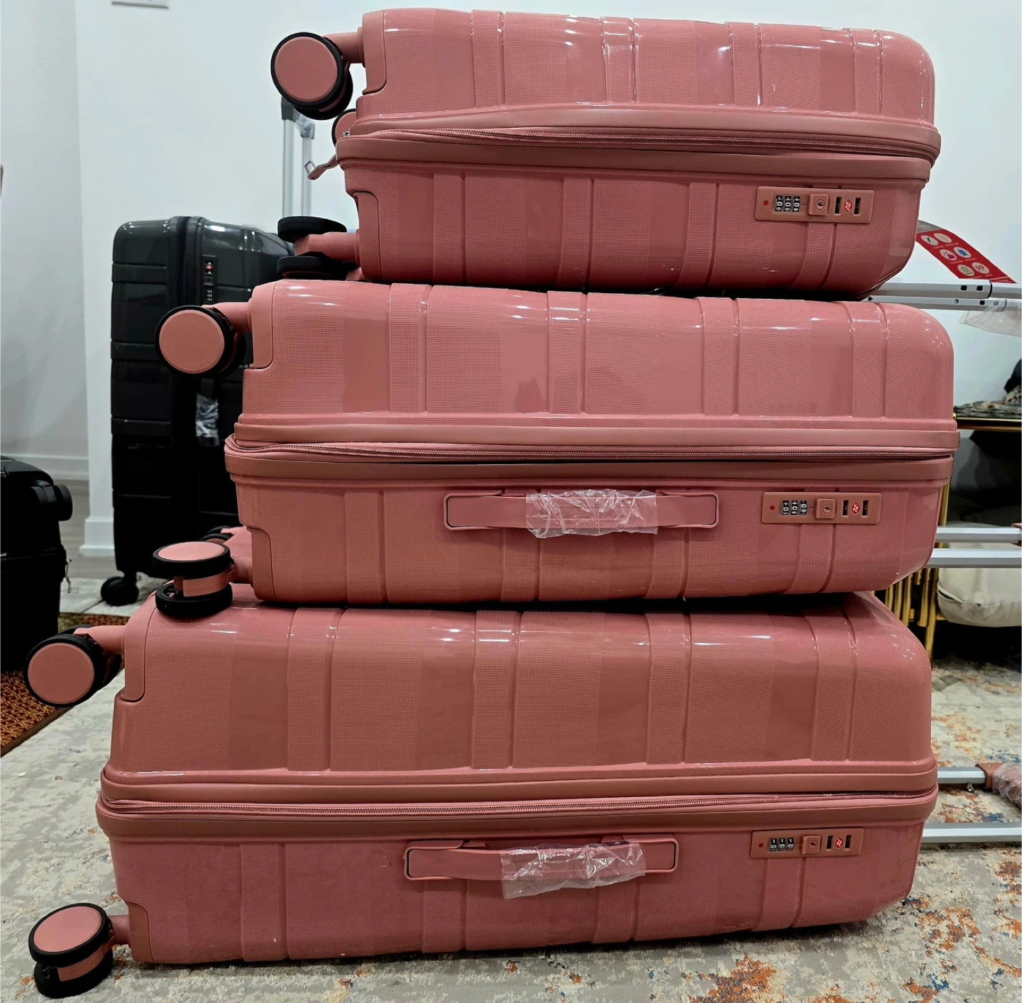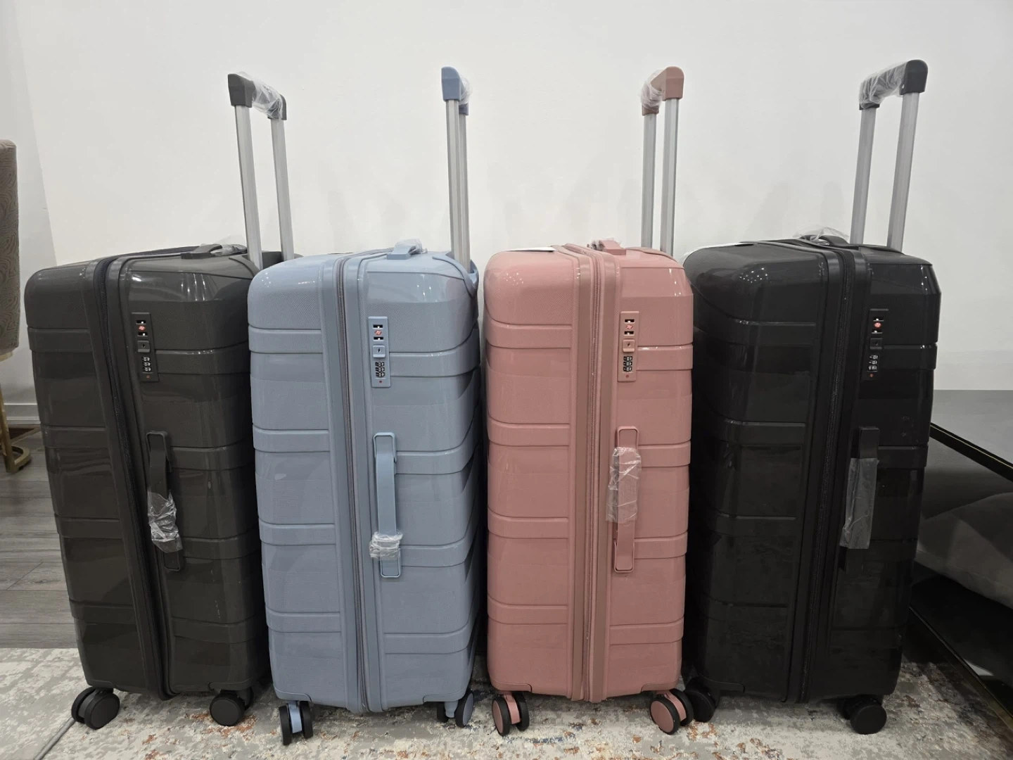 Sale! This non breakable luggage set of 3 : 28”, 24”, 2”. Is on sale. Sold in four colours: pink, blue, grey, black.