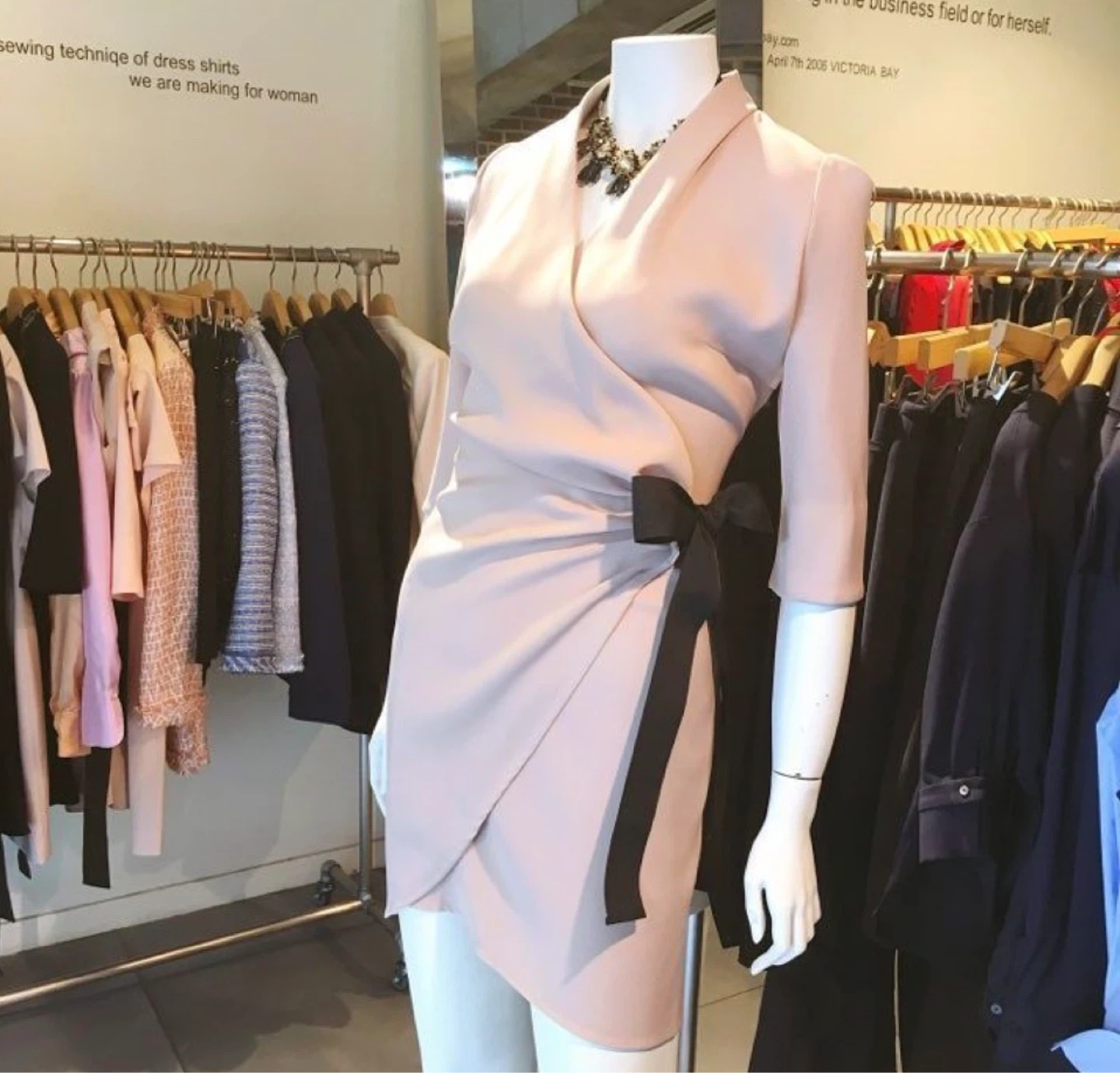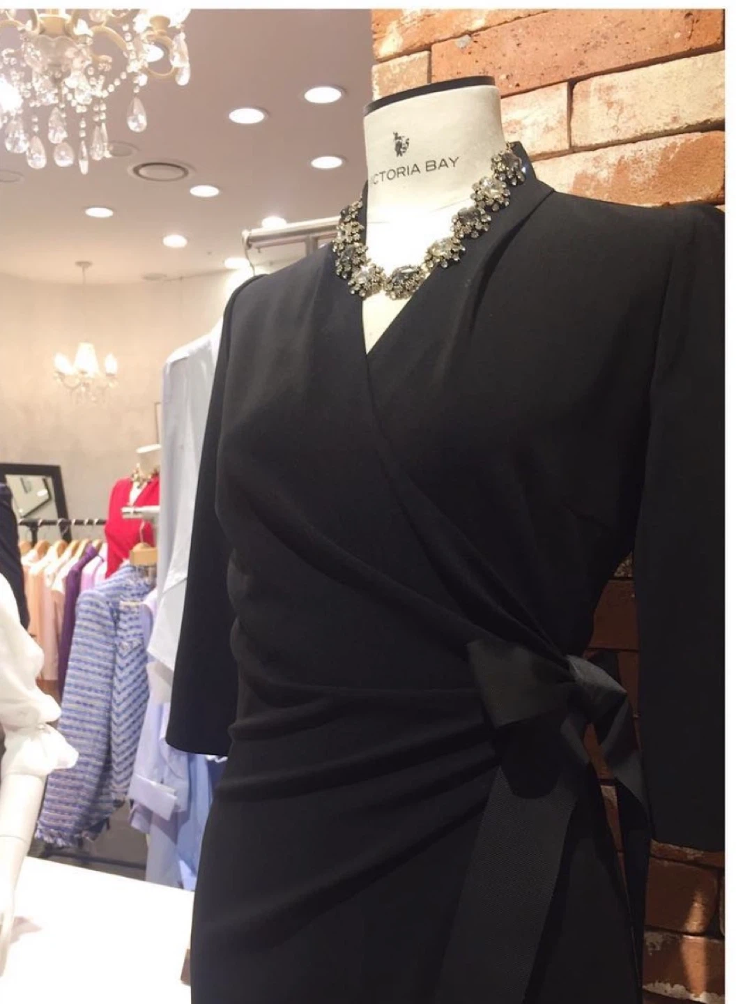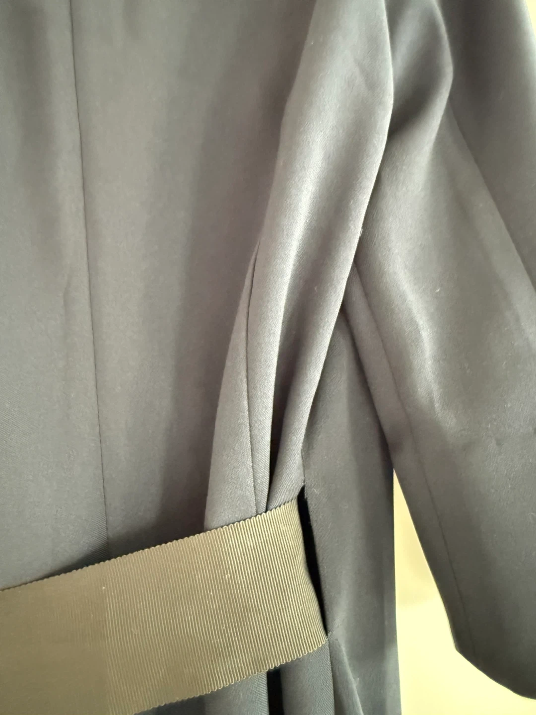 Navy blue wrap dress from Victoria Bay. Features a tie waist detail. Polyester blend fabric.