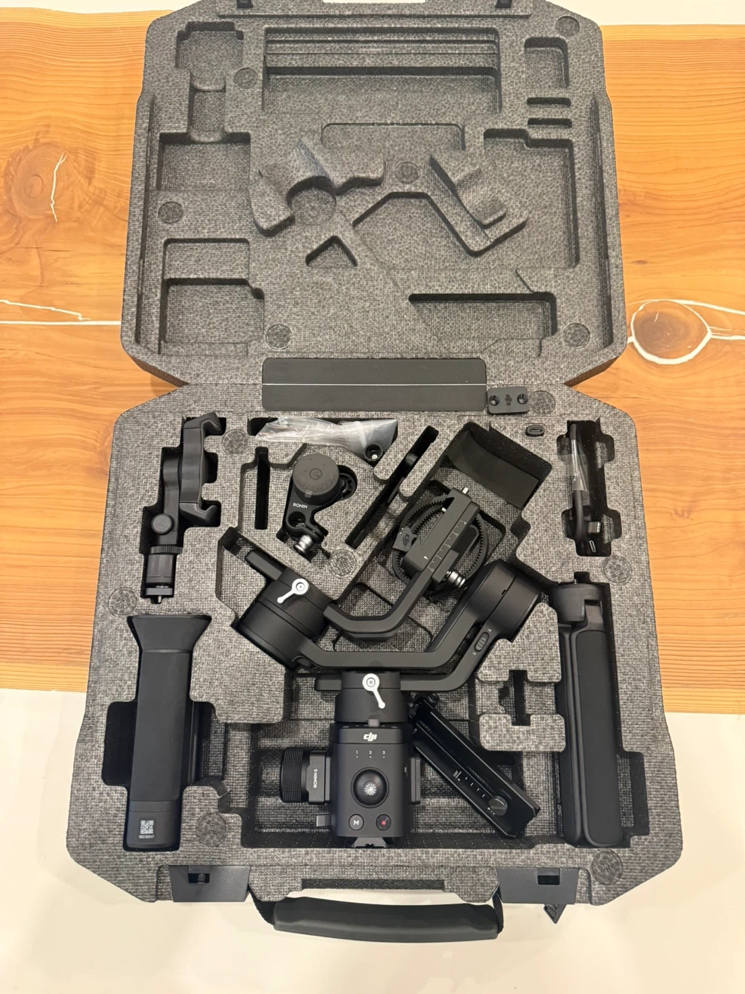 This is a DJI Ronin-SC gimbal stabilizer. It's black and comes in its original case. Includes various accessories.