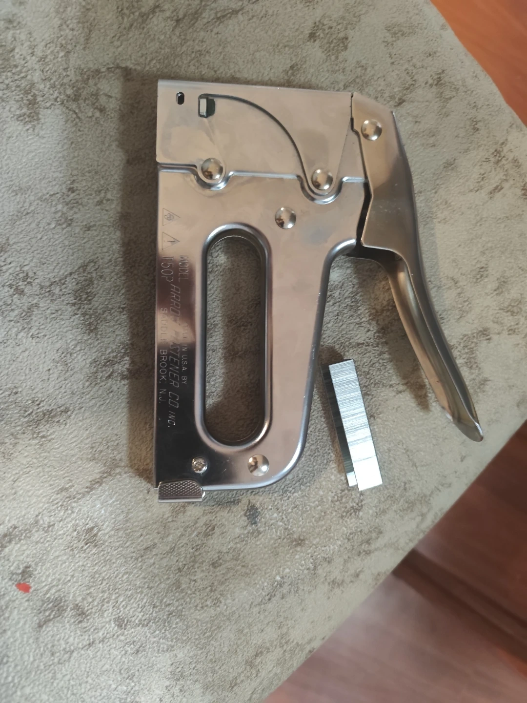Selling an Arrow T50 staple gun! It comes with a box of genuine T50 staples, size 9/16" (14mm). The box also mentions it's compatible with Stanley, Dewalt, and Bostitch staplers. Perfect for your DIY projects!