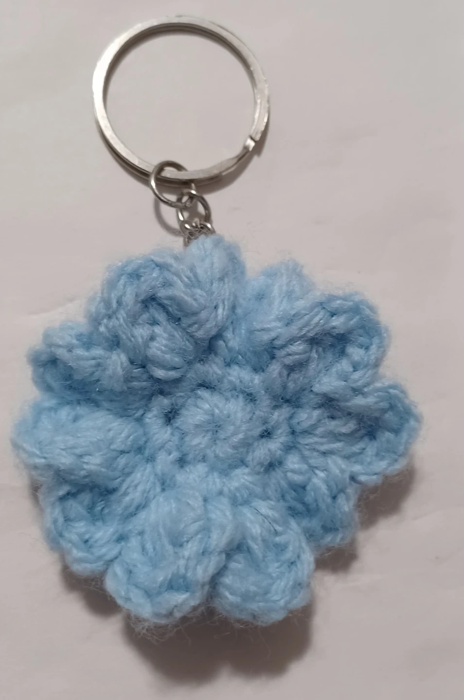 Handmade crocheted flower keychain. Available in grey and light blue. These would make a cute addition to your keys or bag!Both $5 Each $4