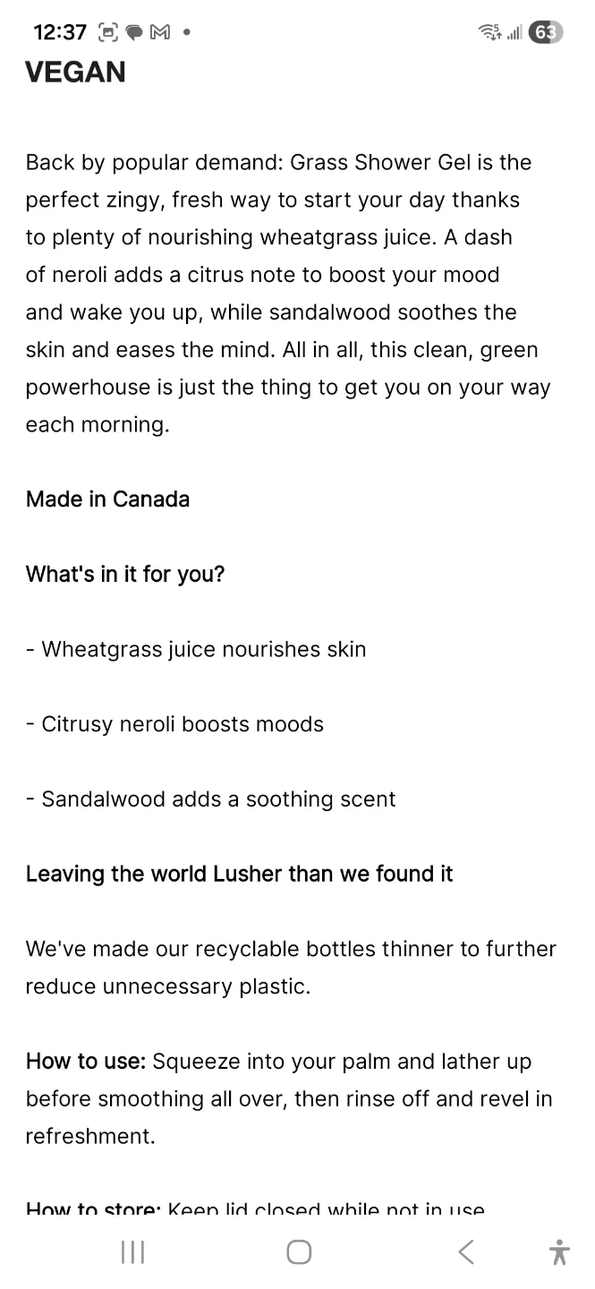 This Lush Grass Shower Gel comes in a 100ml bottle. It's made with wheatgrass juice and neroli oil for a fresh scent. This clean, green gel is perfect for starting your day!
