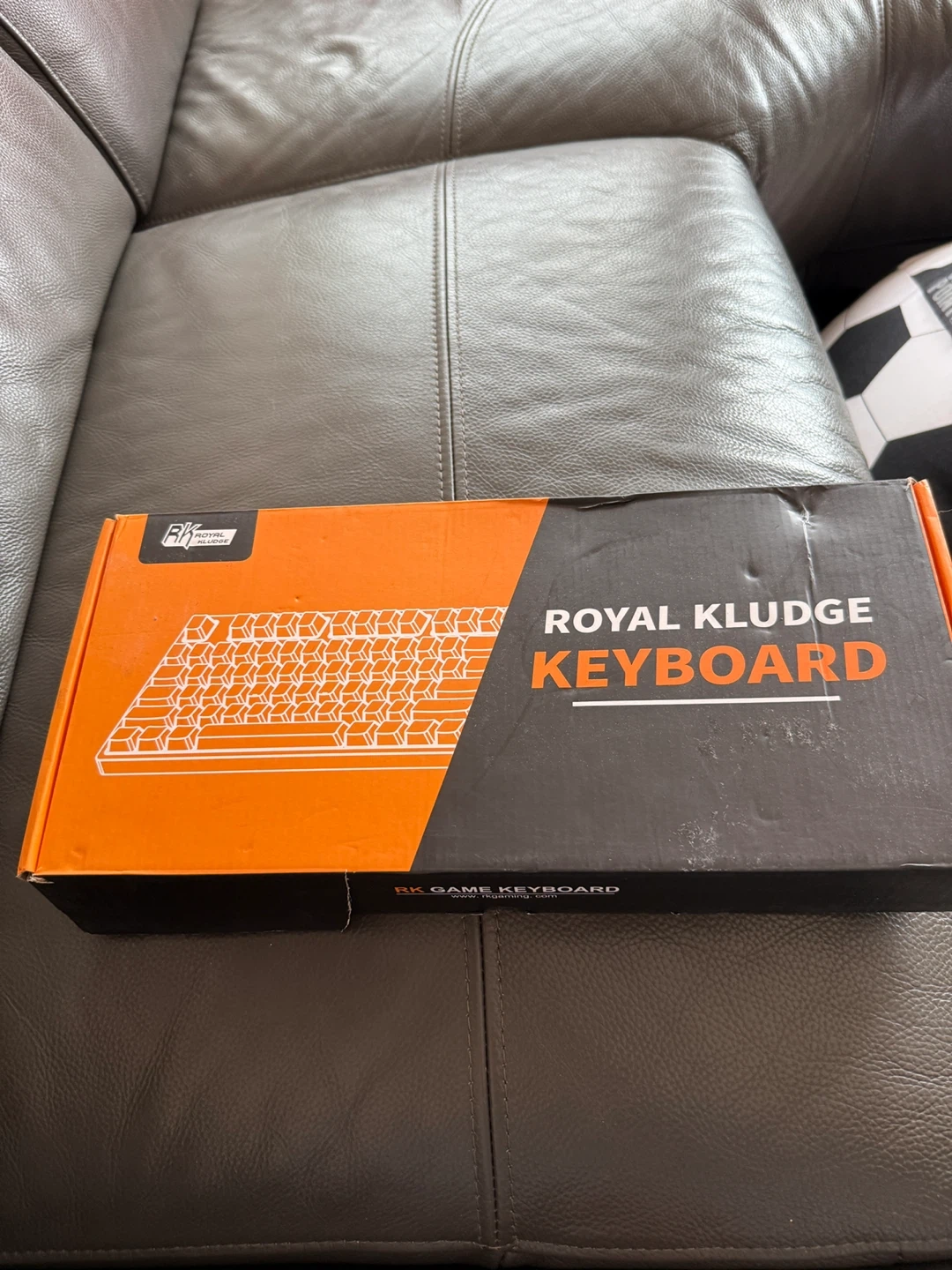 This is a Royal Kludge RK Game Keyboard. It's a black, compact keyboard that comes in its original box. This keyboard is suitable for gaming or everyday computer use.