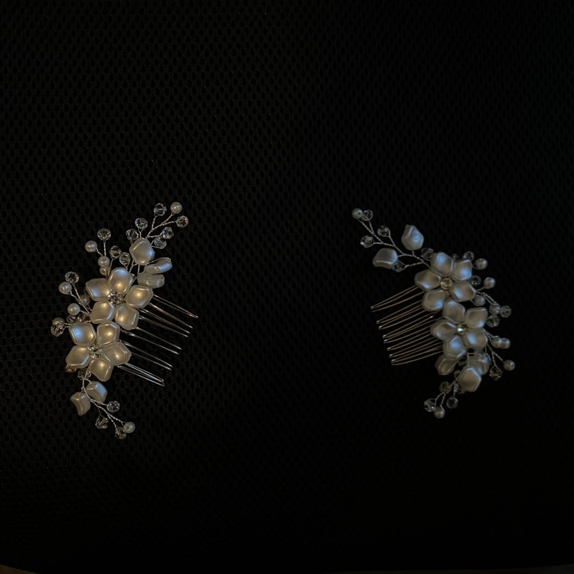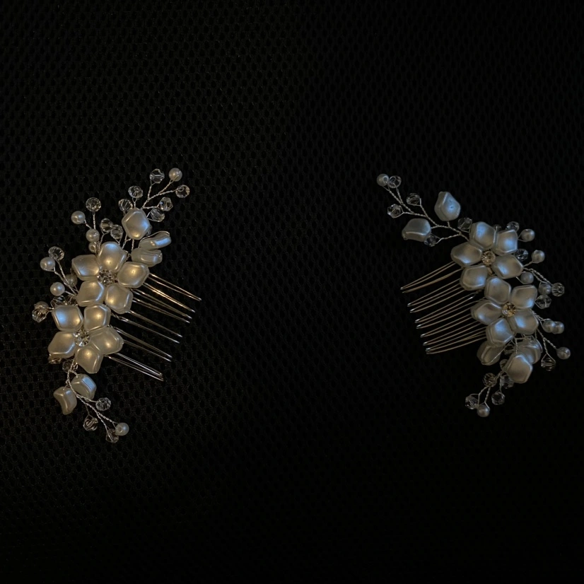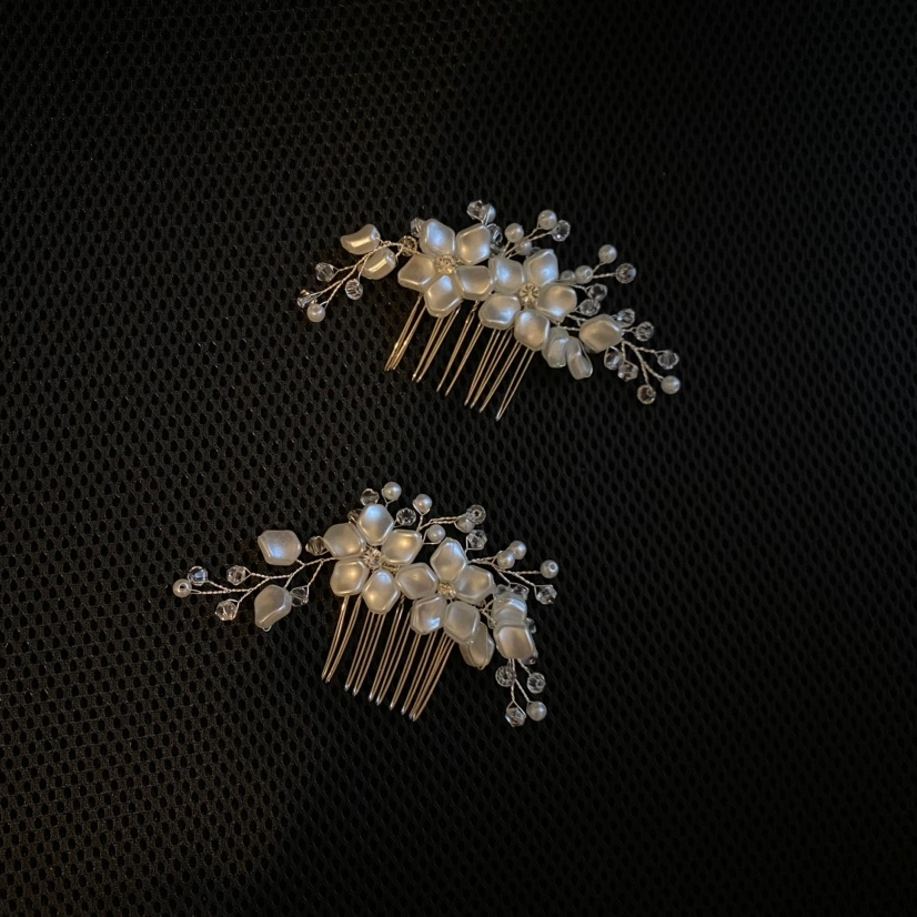2 Bridal White Pearl Hair Combs, Flower Hair Insert Comb Wedding