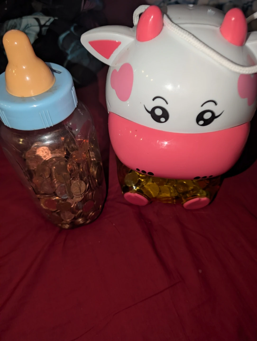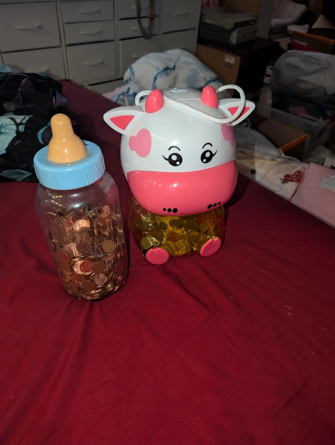 Both for $25 Cow Piggy Bank and Baby Bottle Coin Holder