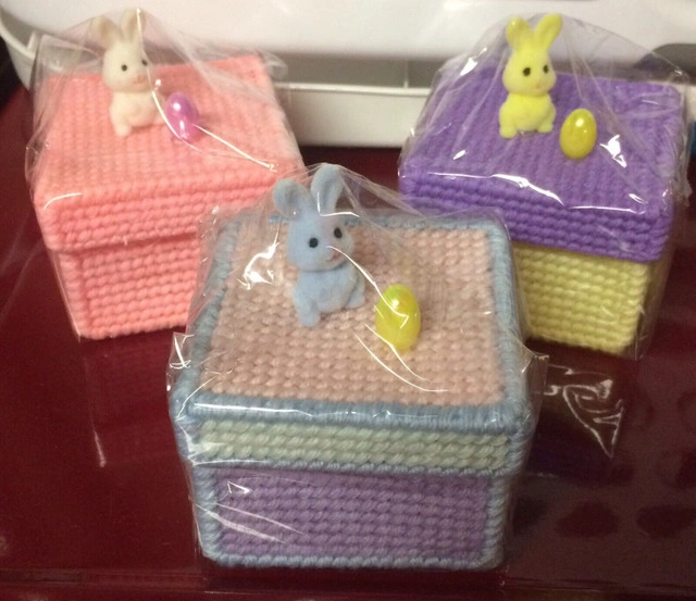 Bunny boxes for sale. New. Handmade. With bunny and egg on top. About 3” wide. Great for Easter gift, storage, trinkets, home decorating, kids, and more. All 3 for $12. Near the Burlington/Oakville border.